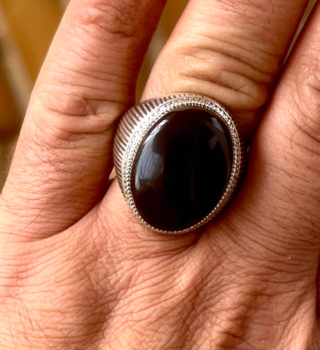 انگشتر عقیق سیاه معدنی با رگه های سلیمانی رکاب دستی کهنه کد ۱۸۳۴٬۸۹۰٬۰۰۰ تومان