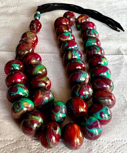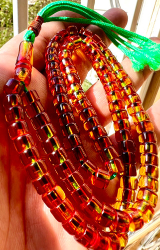 تسبیح کهربای پرچمی سرخ کهنه ۱۵ ساله ،تراش استامبولی کد ۲۴۸۲٬۹۹۰٬۰۰۰ تومان
