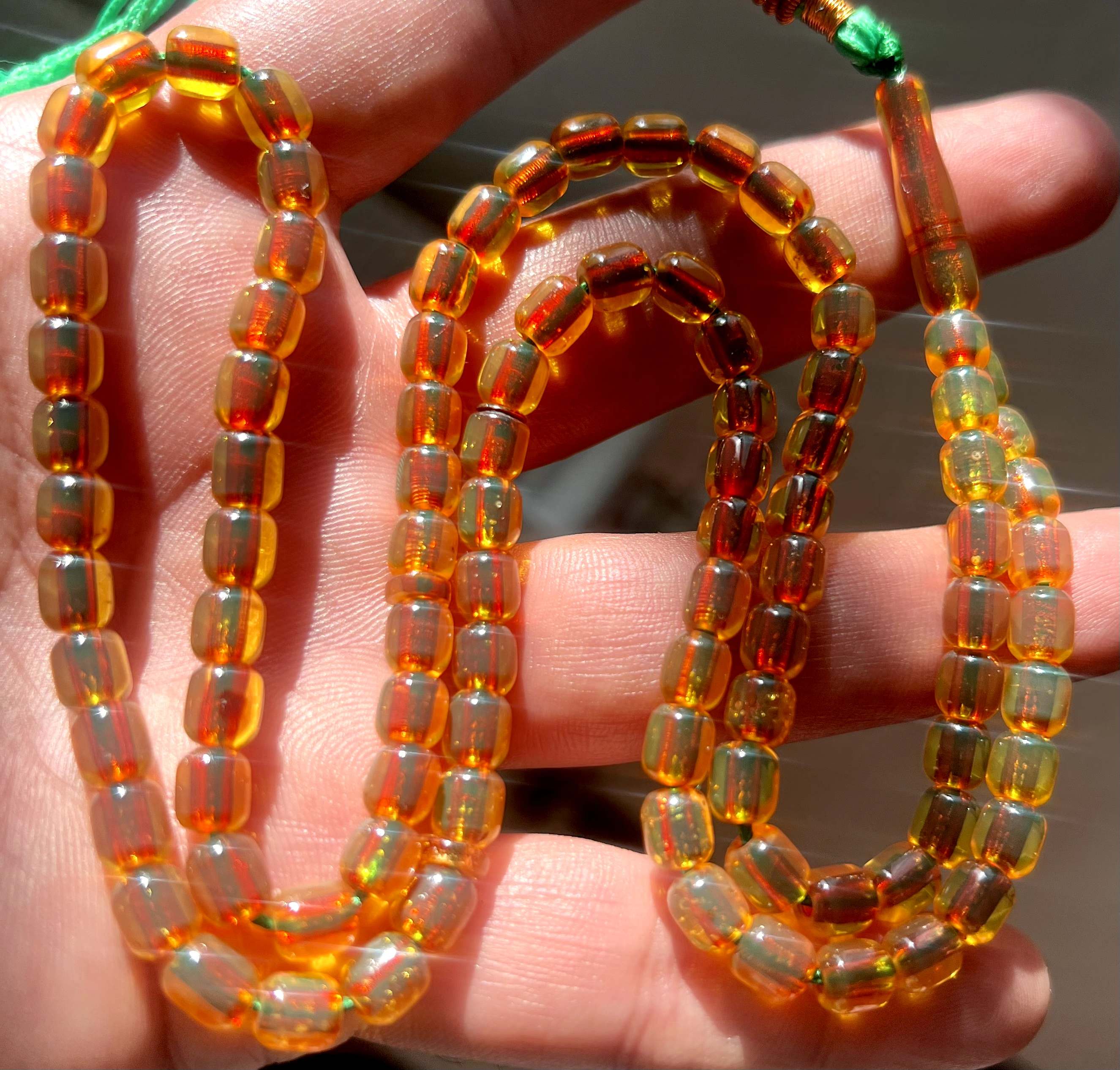 تسبیح کهربای رنگینکمانی خشک و بودار و کهنه شمش سری اول تراش استاد یوسف مراغه کد ۳۰۸۲٬۹۰۰٬۰۰۰ تومان