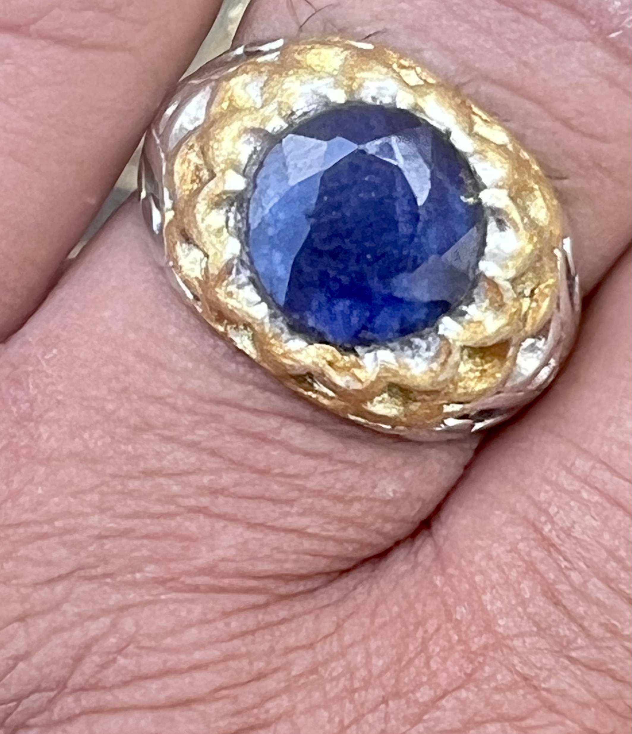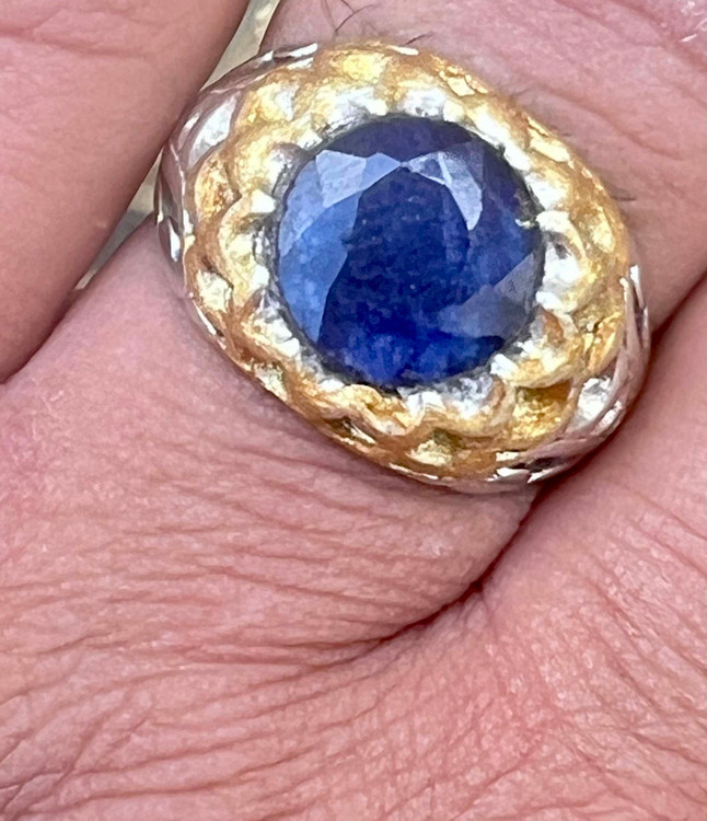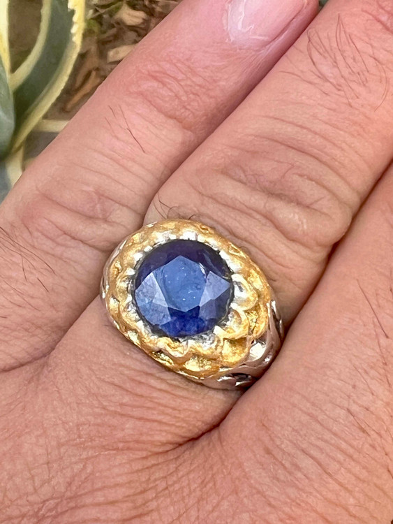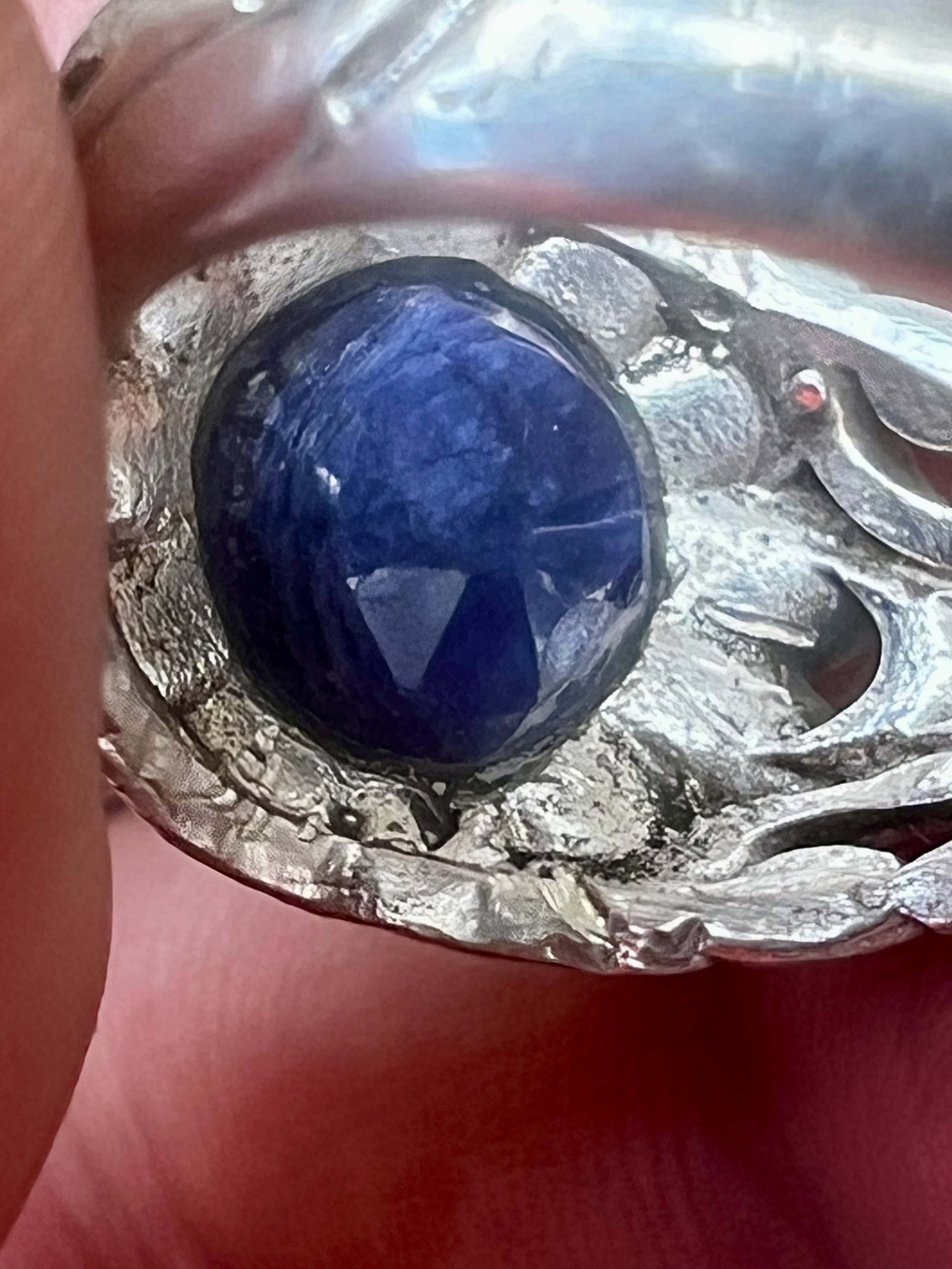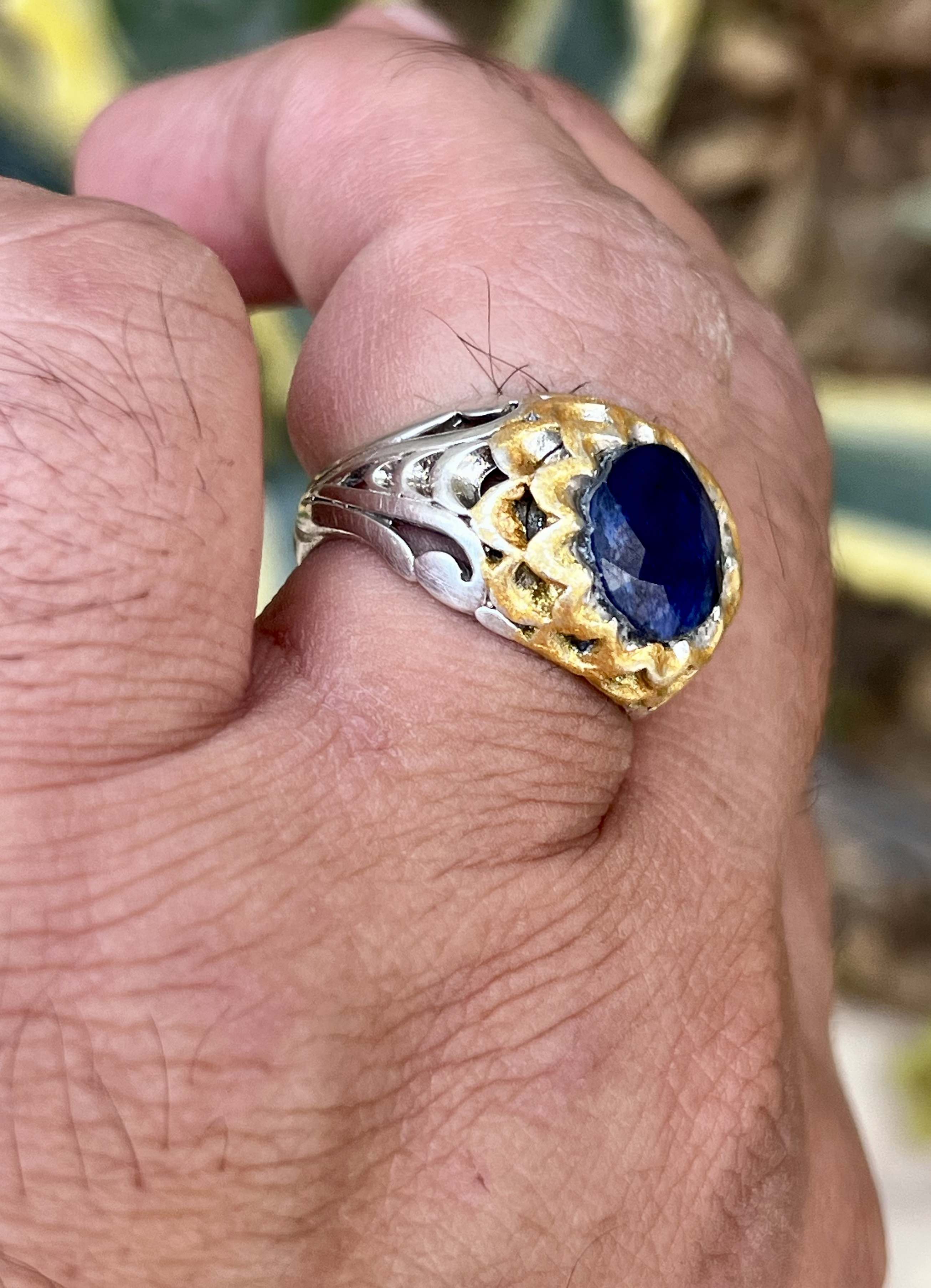 انگشتر نقره ۹۲۵ با گوهر یاقوت کبود معدنی آفریقایی