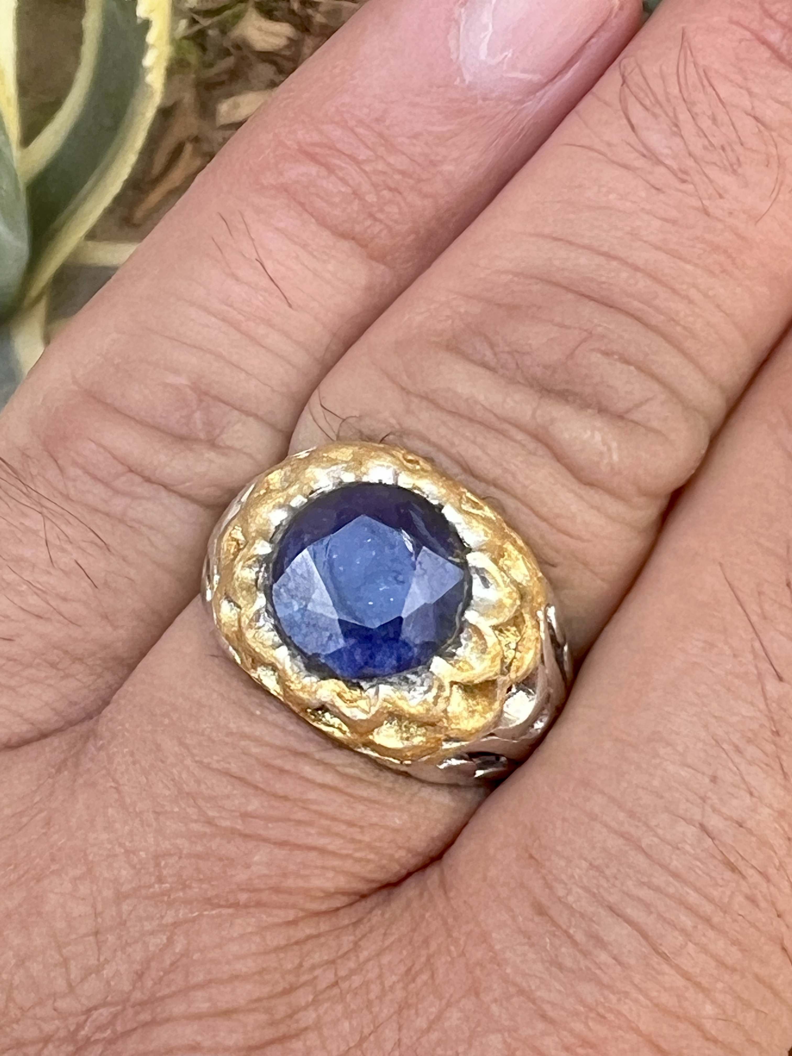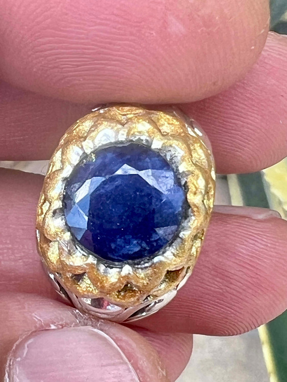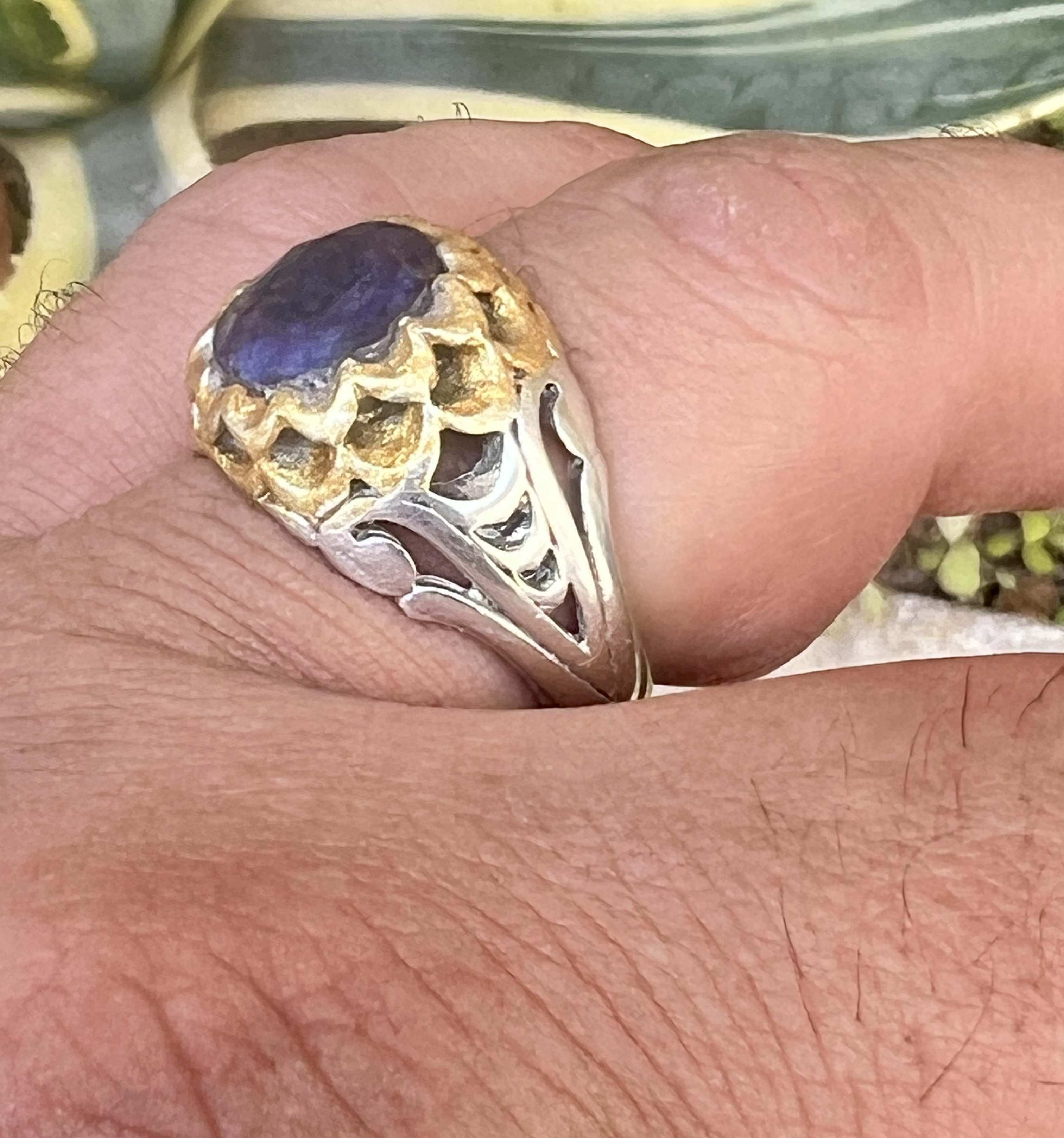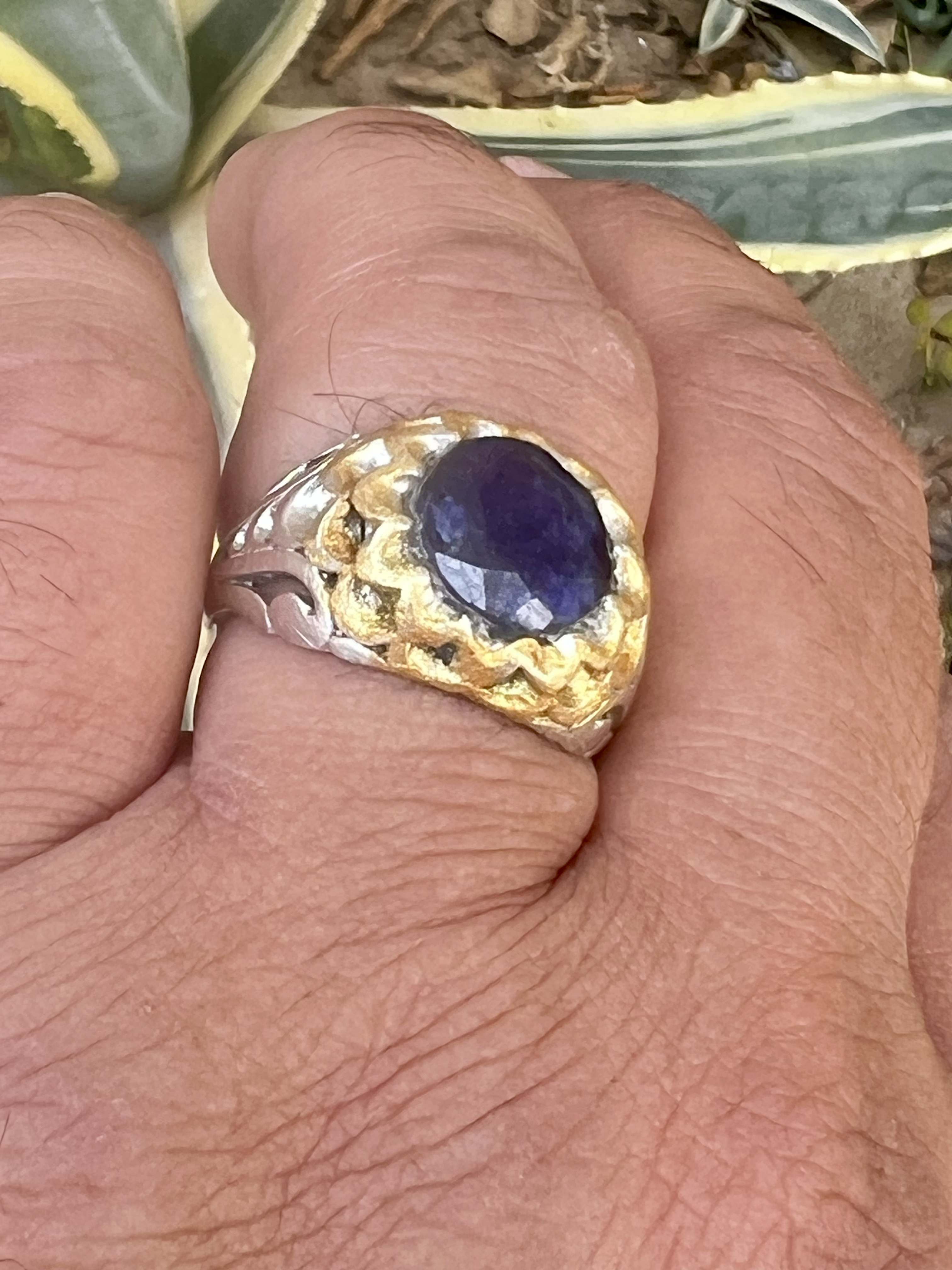 انگشتر یاقوت کبود معدنی آفریقایی اصل رکاب نقره ۹۲۵