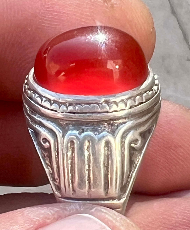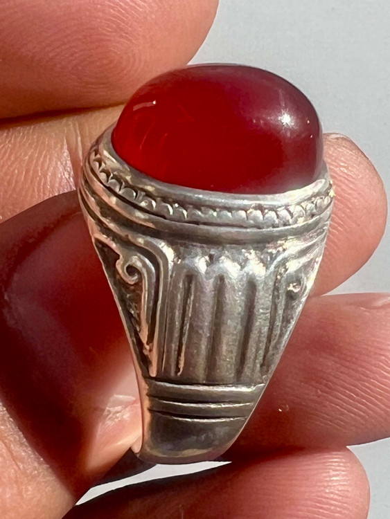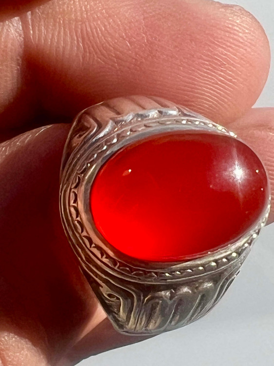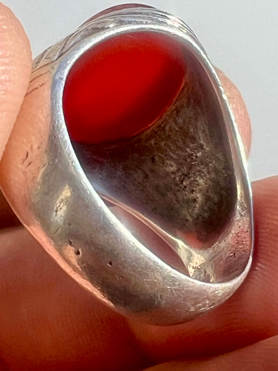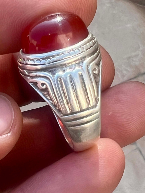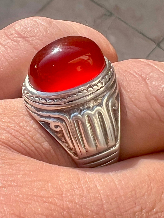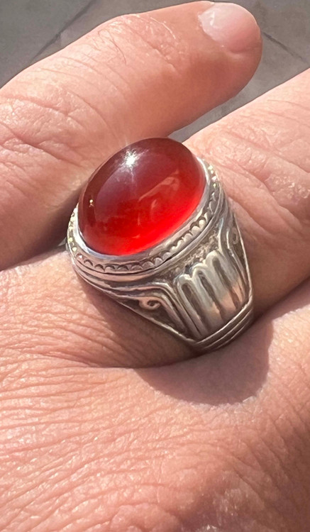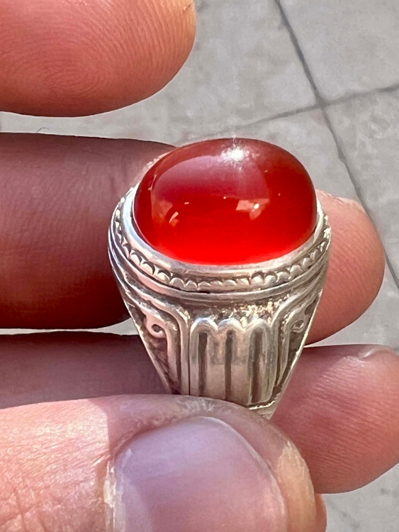 انگشتر نقره ۹۲۵ رکاب استاد طهماسبی با عقیق کلوخه سرخ طبیعی