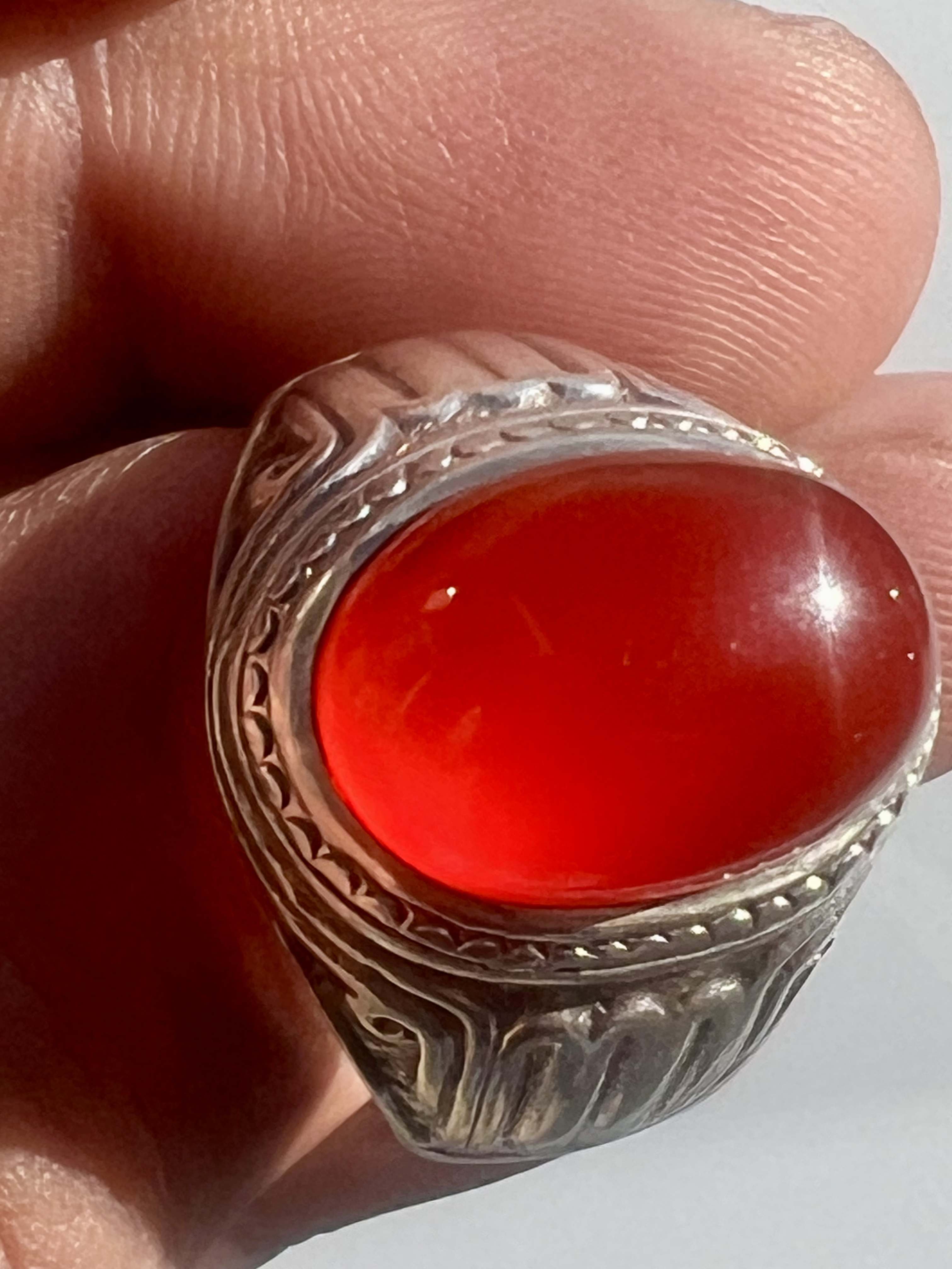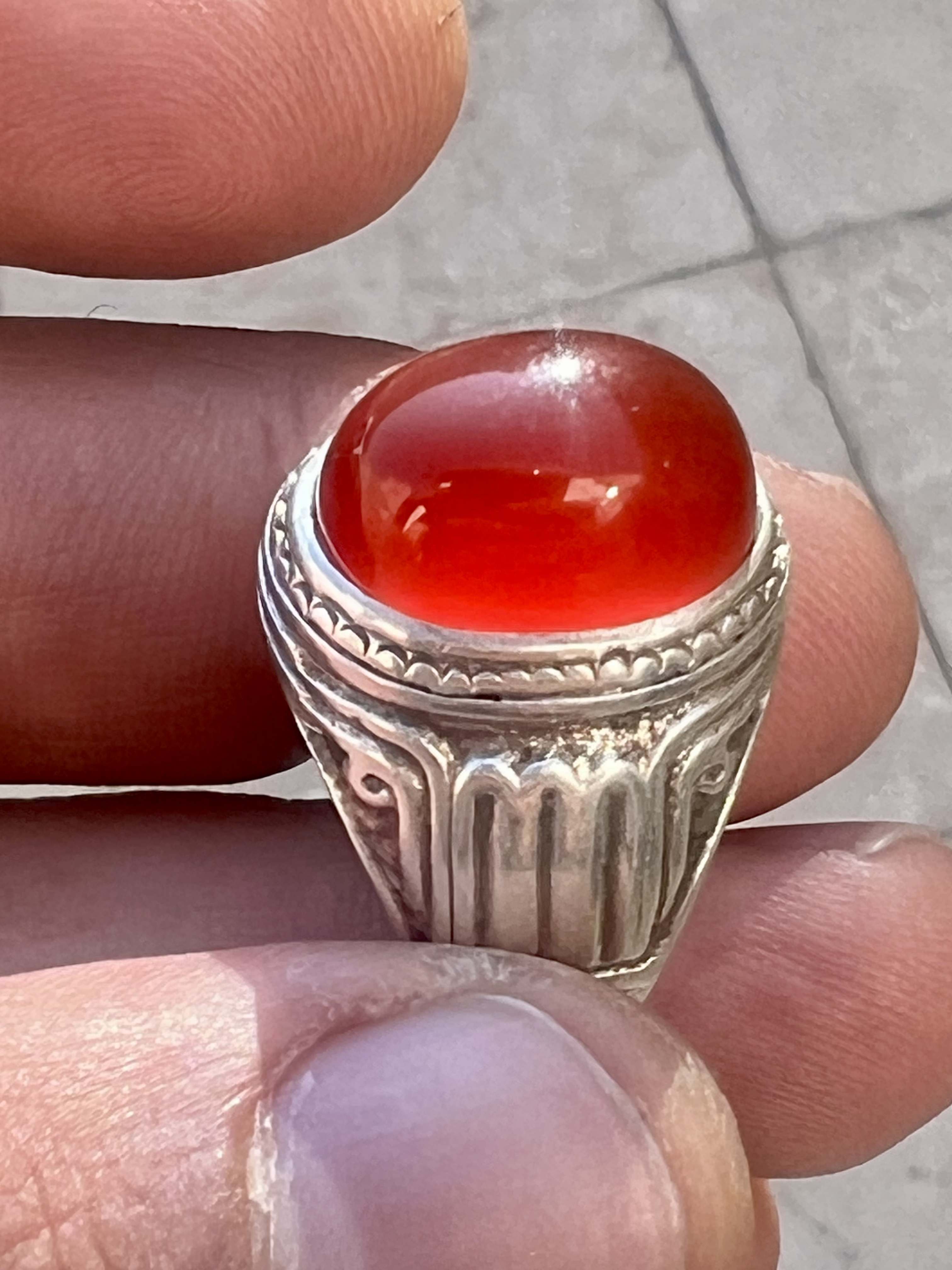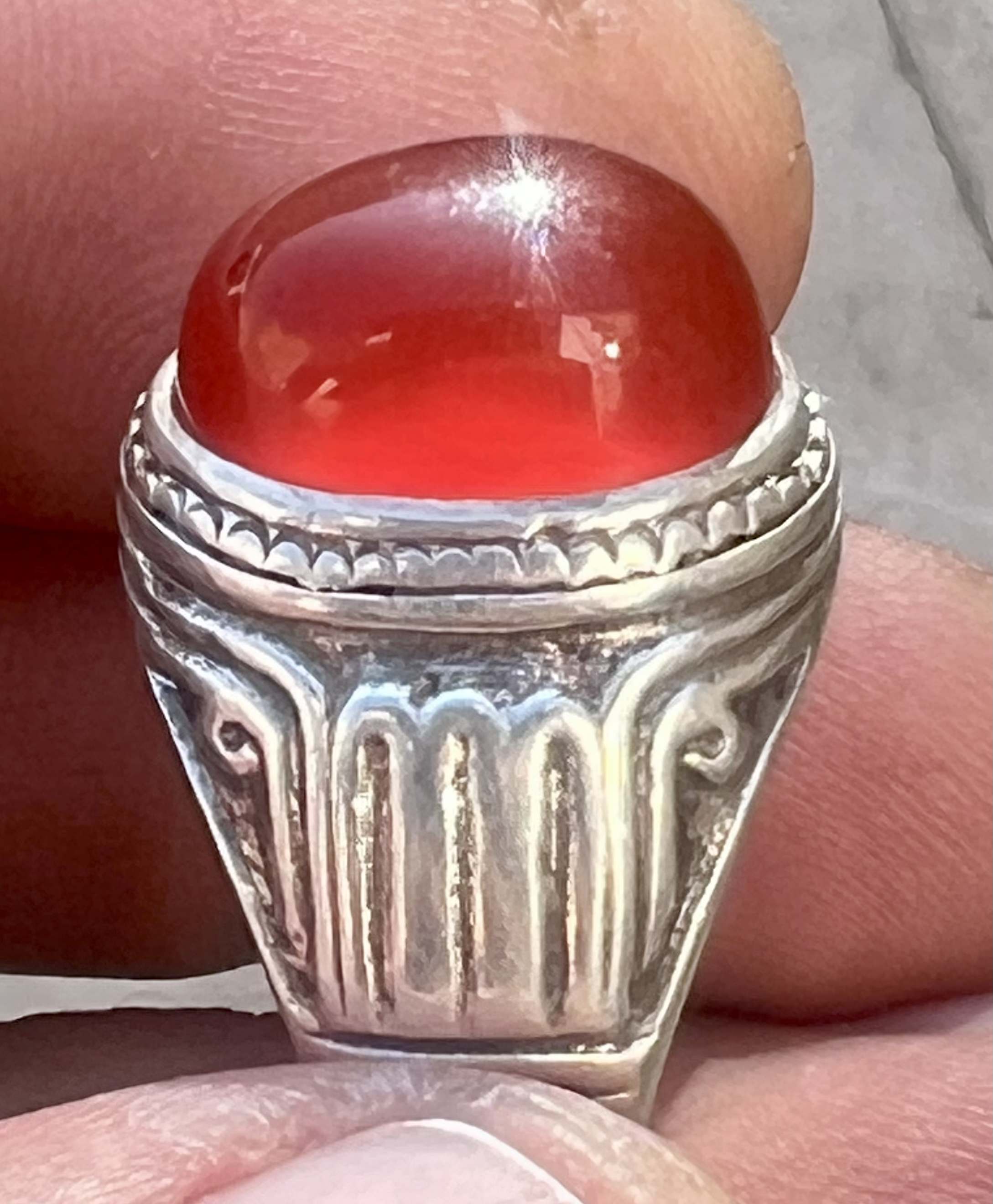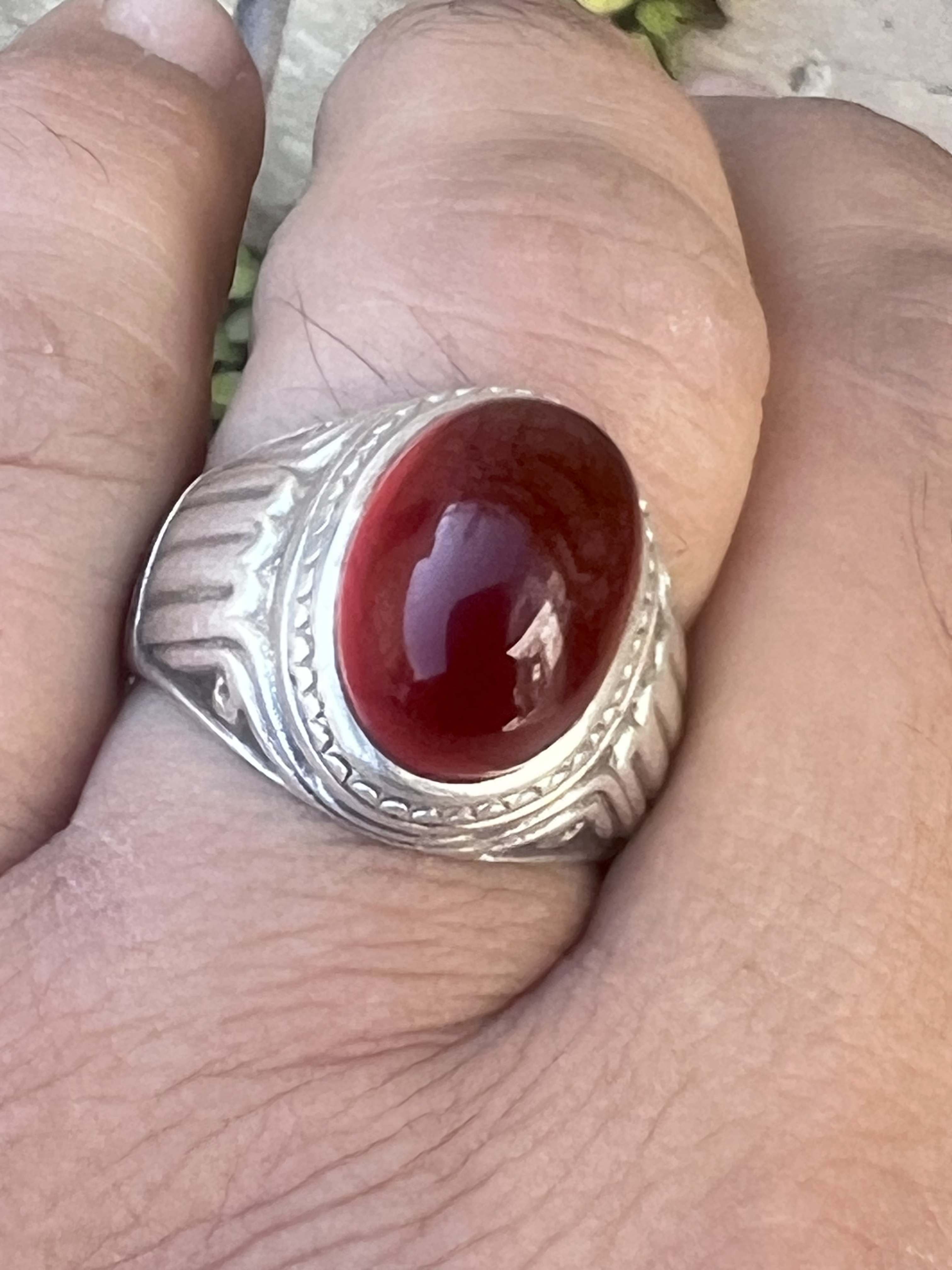 انگشتر نقره ۹۲۵ رکاب استاد طهماسبی با عقیق کلوخه سرخ طبیعی