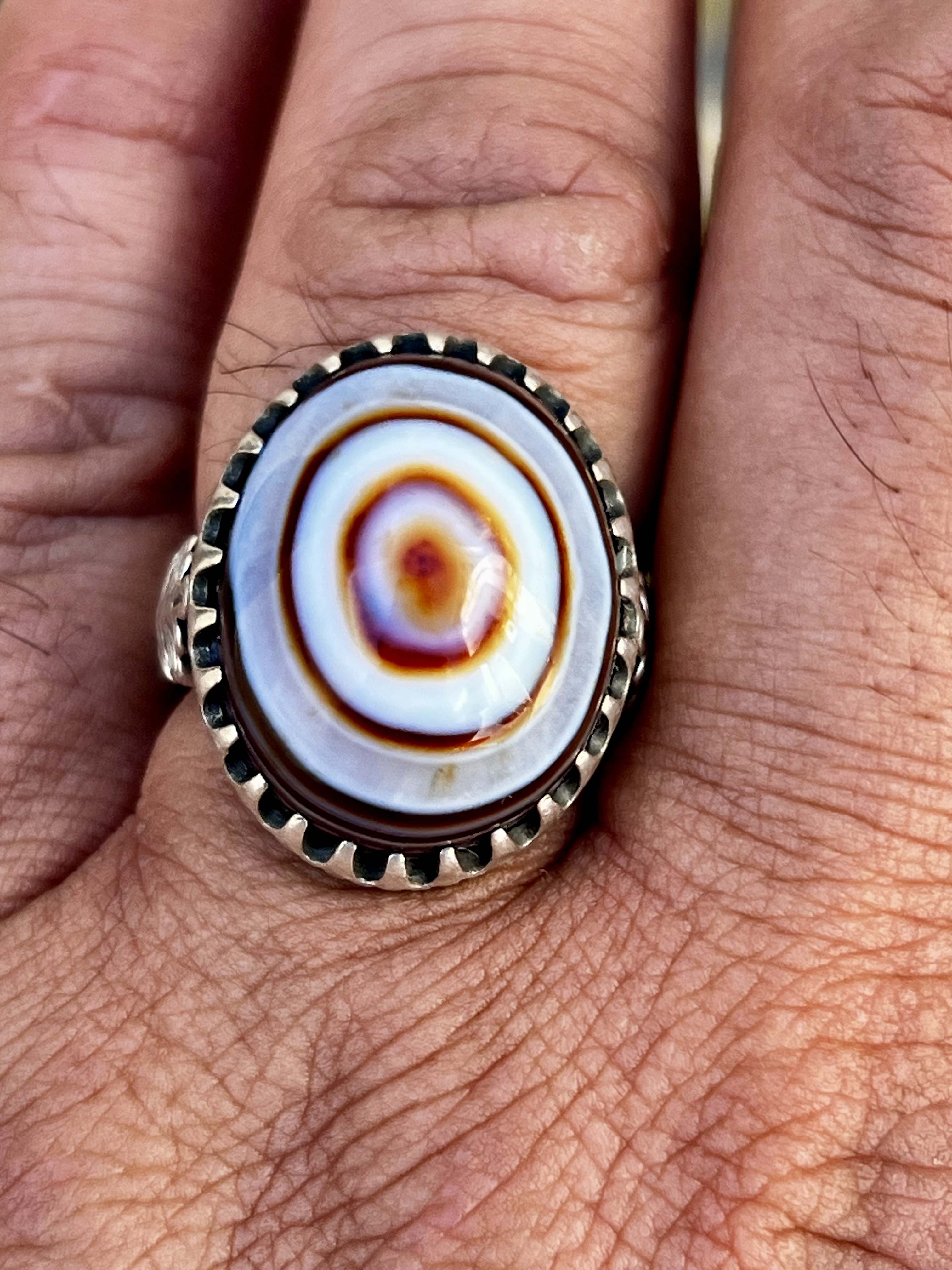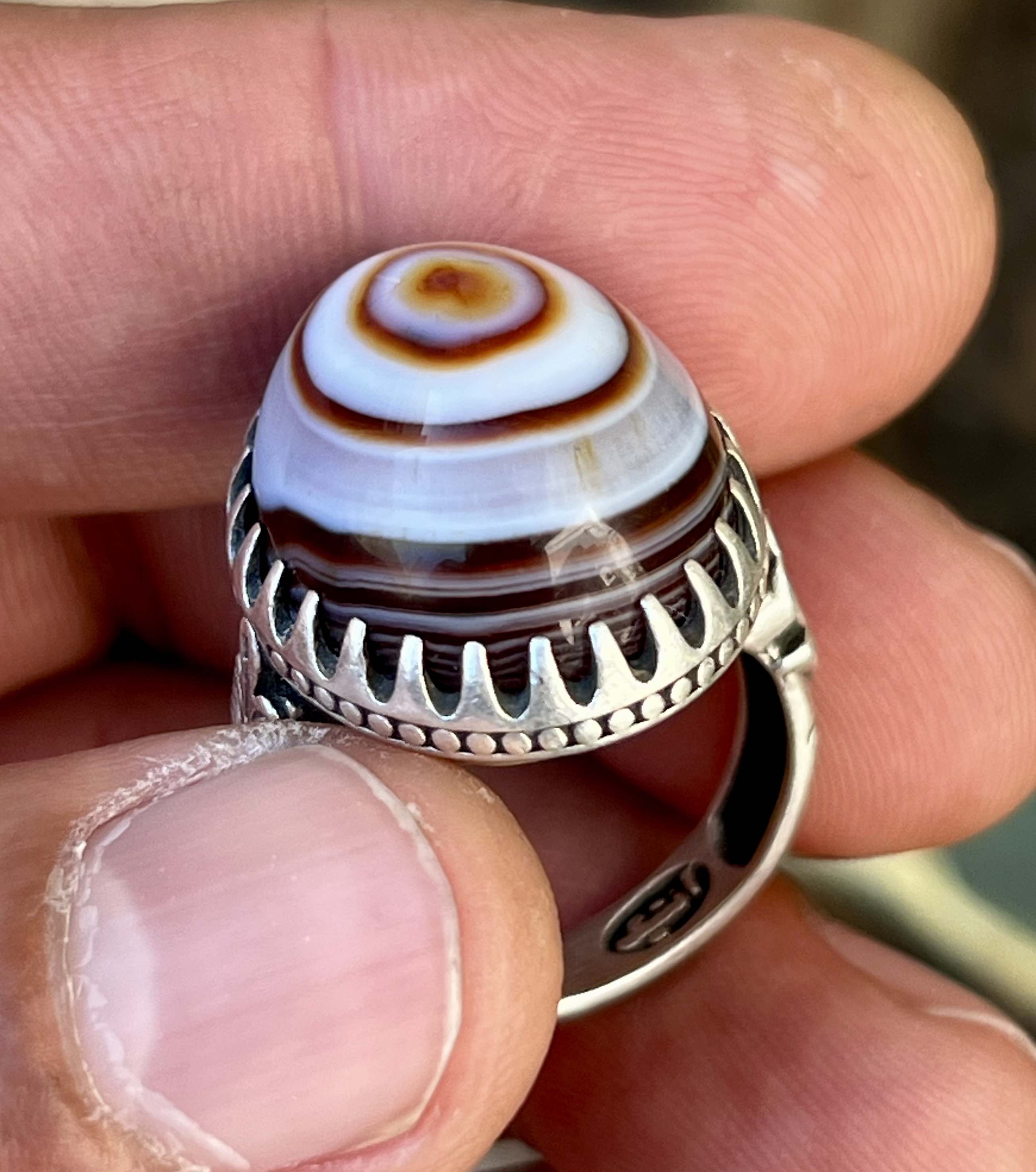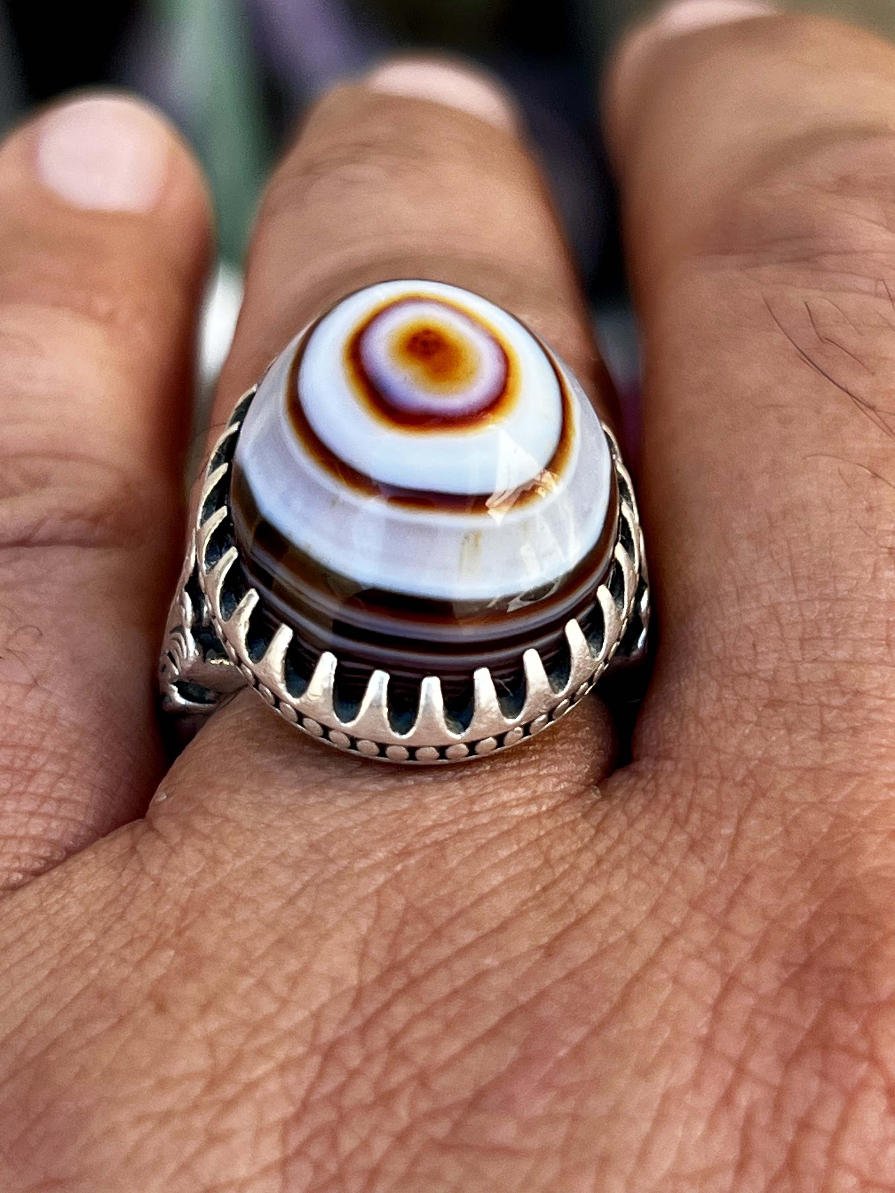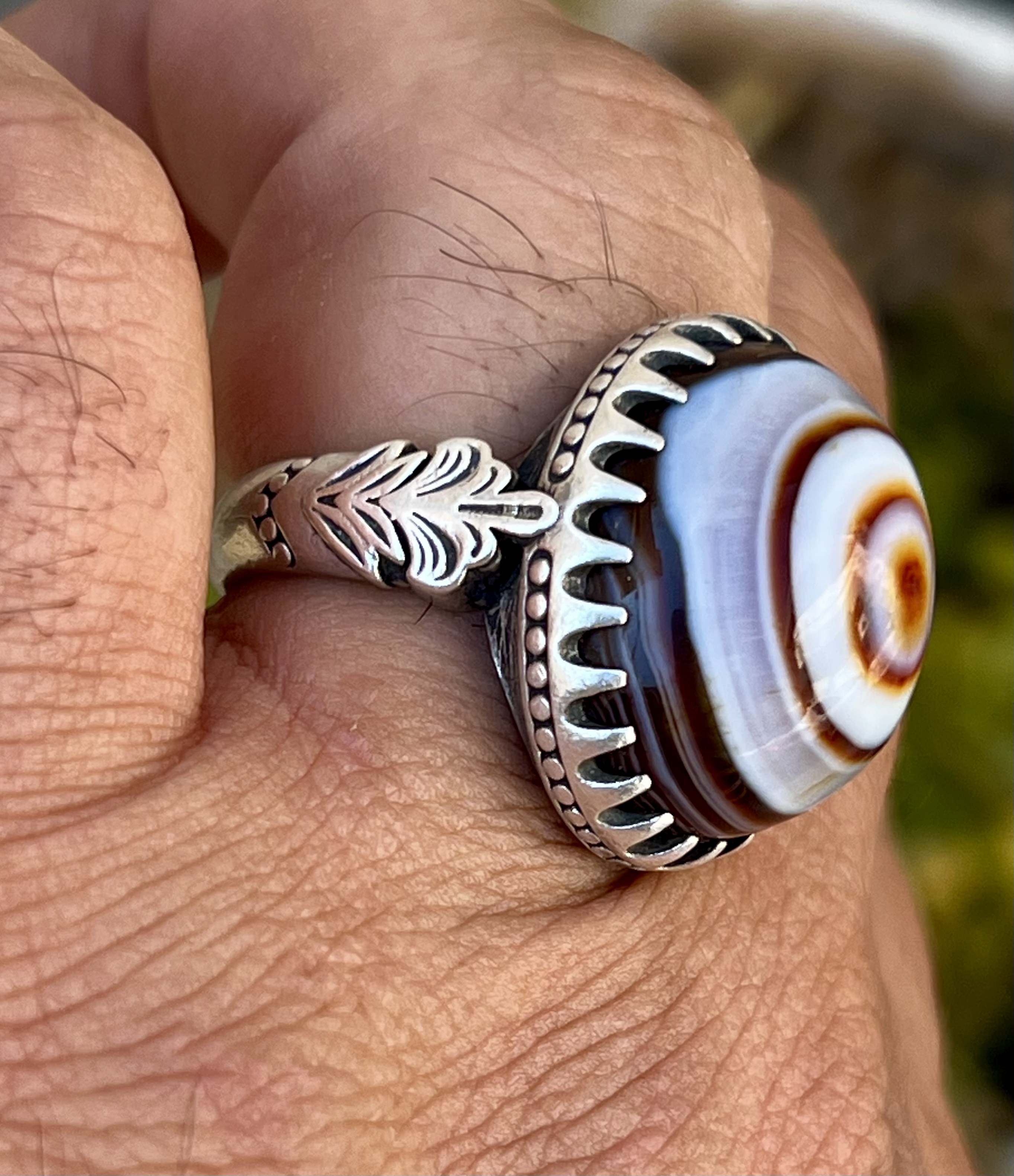 انگشتر نقره ۹۲۵ با سنگ سه پوست طبیعی وزن ۱۶ گرم سنگ بابا قوری خوشرنگ و خاص کاملا طبیعی ابعاد ۲ در ۱/۵ سانت رکاب نیمه دستساز نقره ۹۲۵ سایز ۶۳/۵