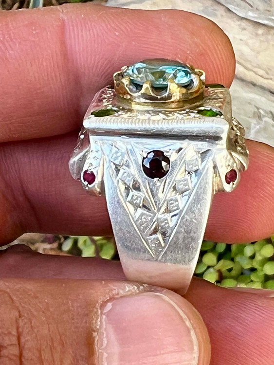 مخراج ۴ عدد زبرجد معدنی ۲ عدد یاقوت کبود معدنی و ۴ عدد گارنت سرخ معدنی