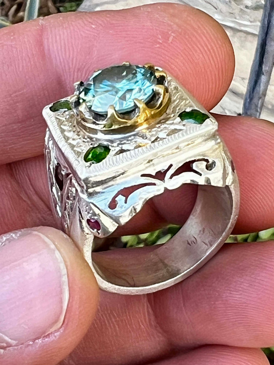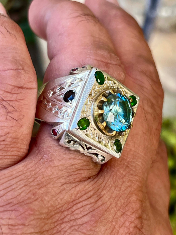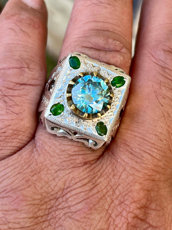 نگین موزانایت آبی به وزن ۶ قیراط