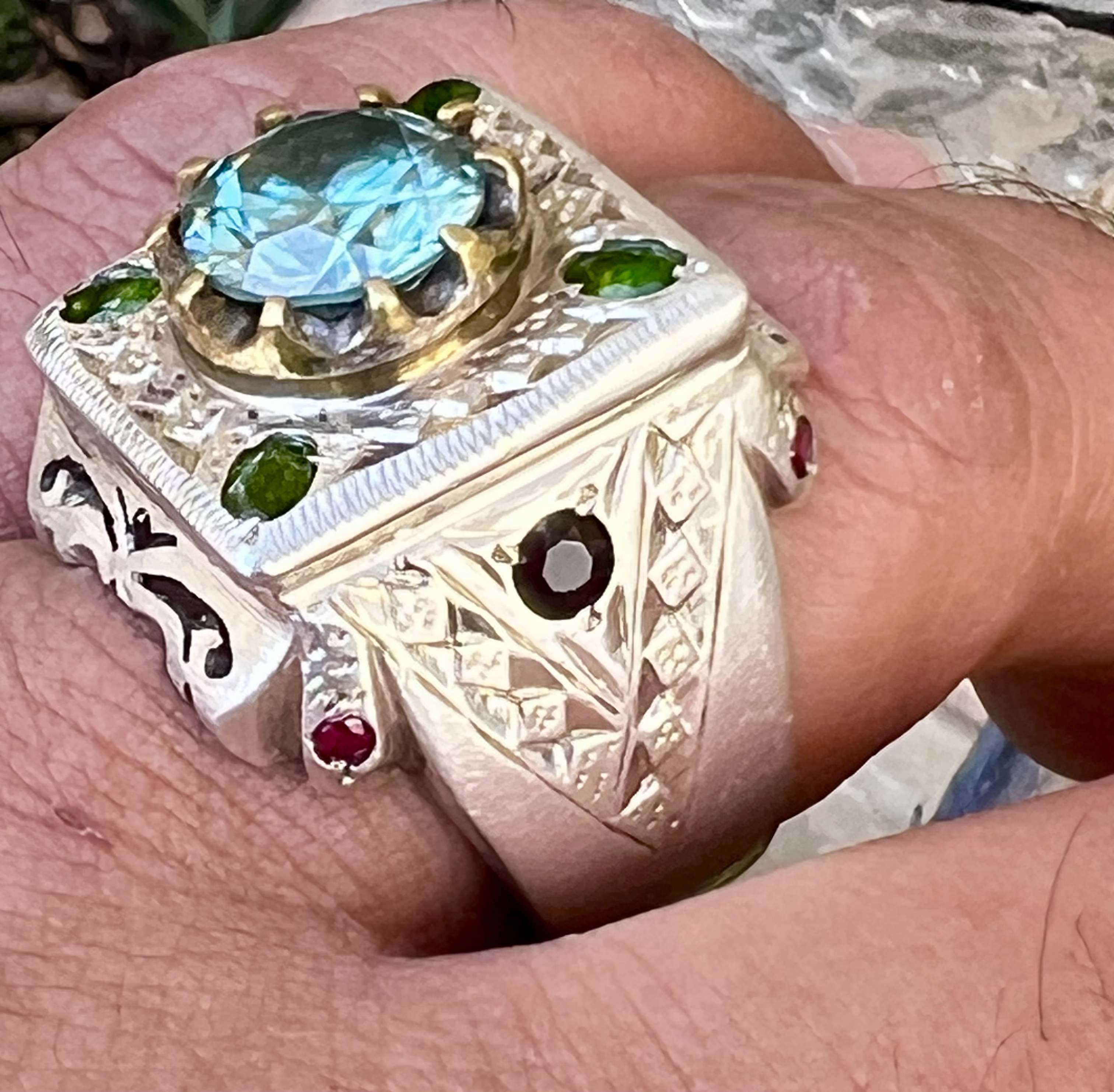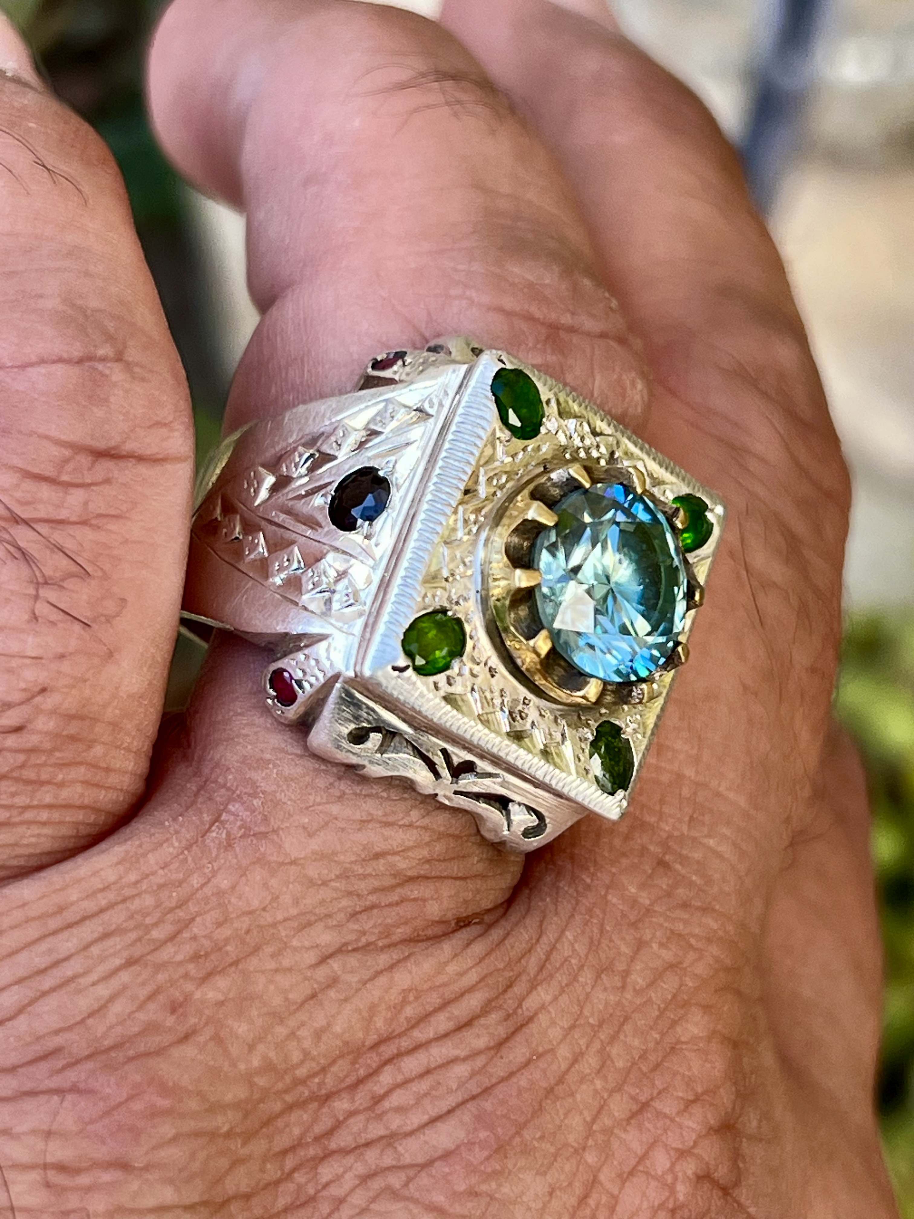 مخراج ۴ عدد زبرجد معدنی ۲ عدد یاقوت کبود معدنی و ۴ عدد گارنت سرخ معدنی