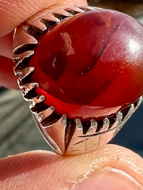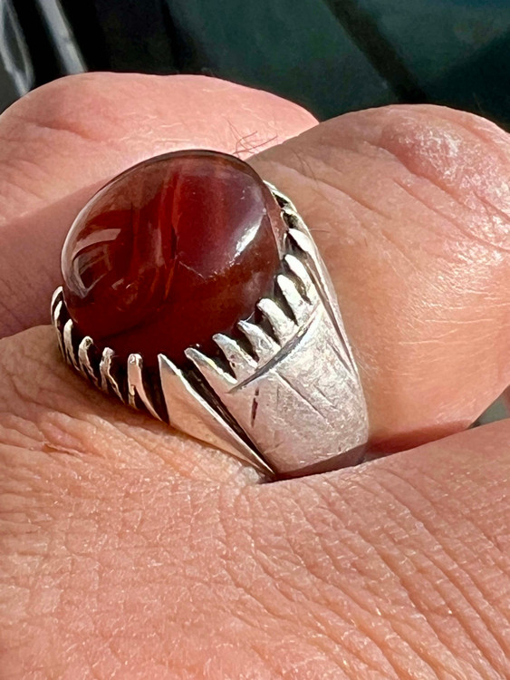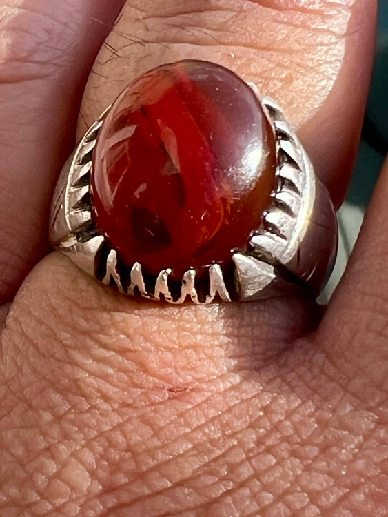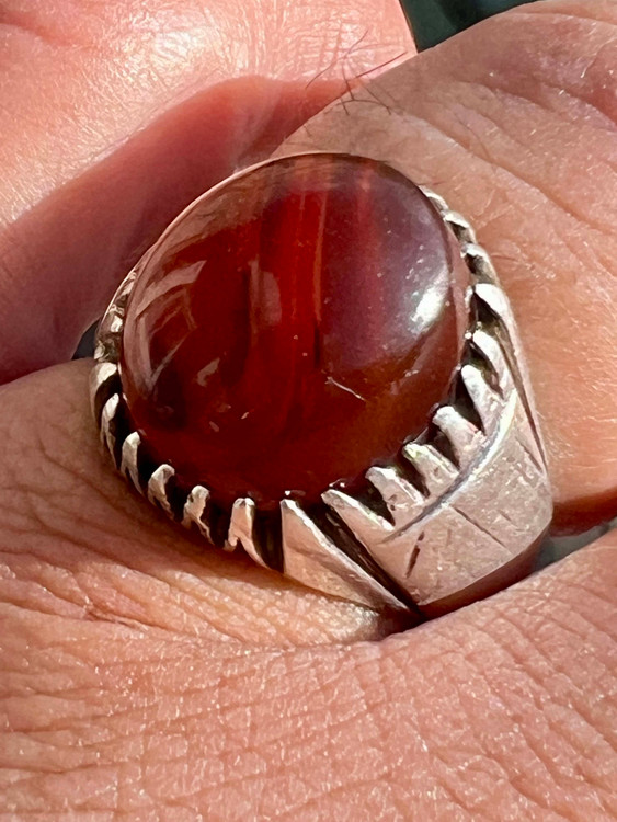 انگشتر نقره ۹۲۵ با عقیق کهنه یمنی