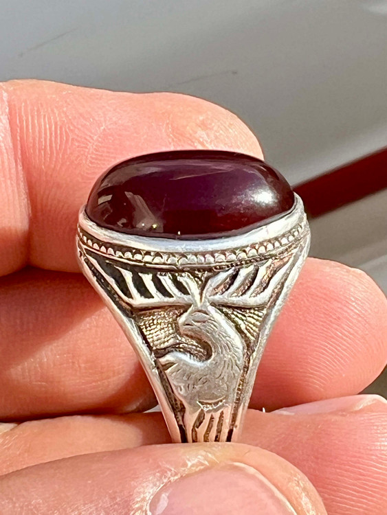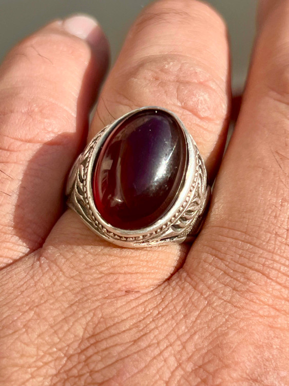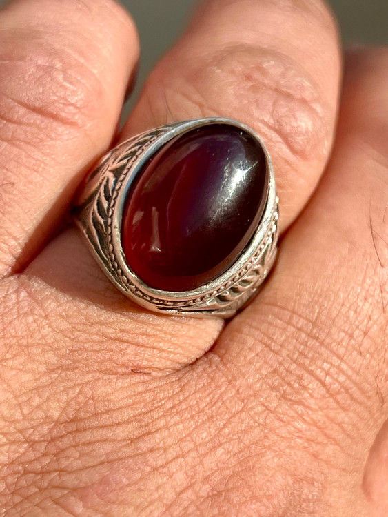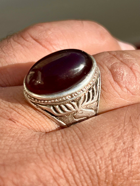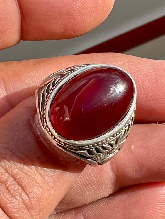 انگشتر نقره ۹۲۵ با عقیق سرخ کلوخه کهنه
