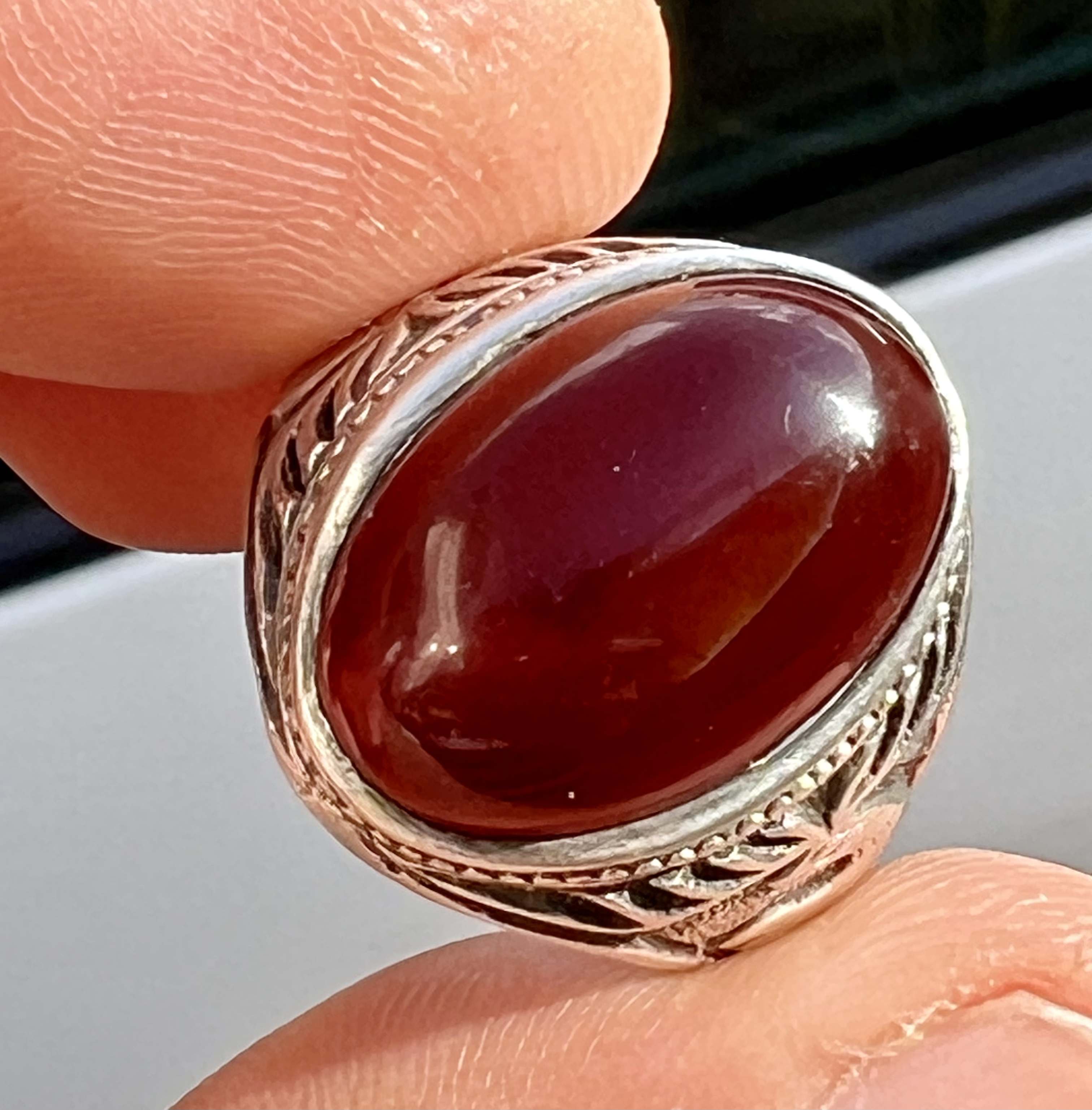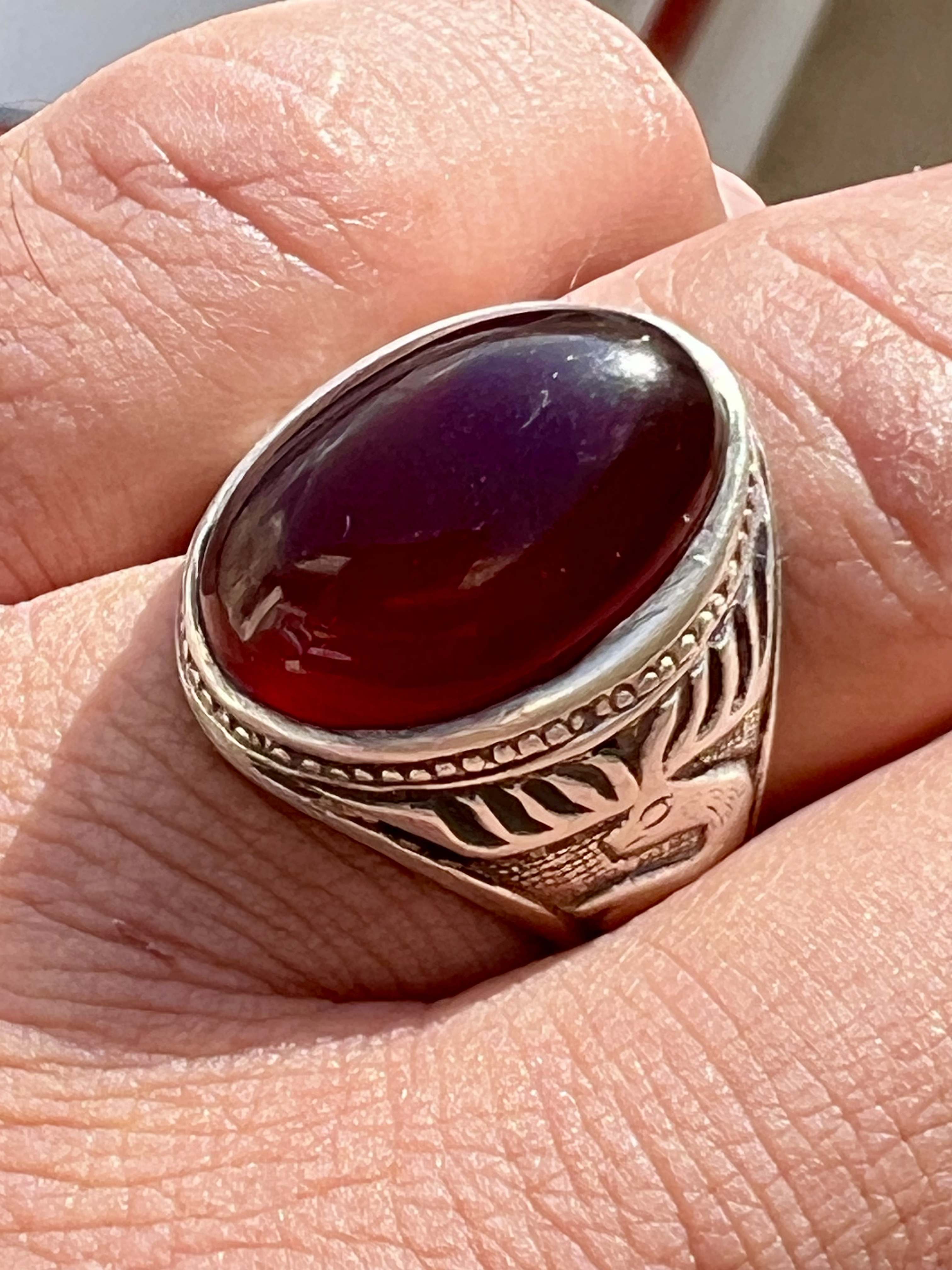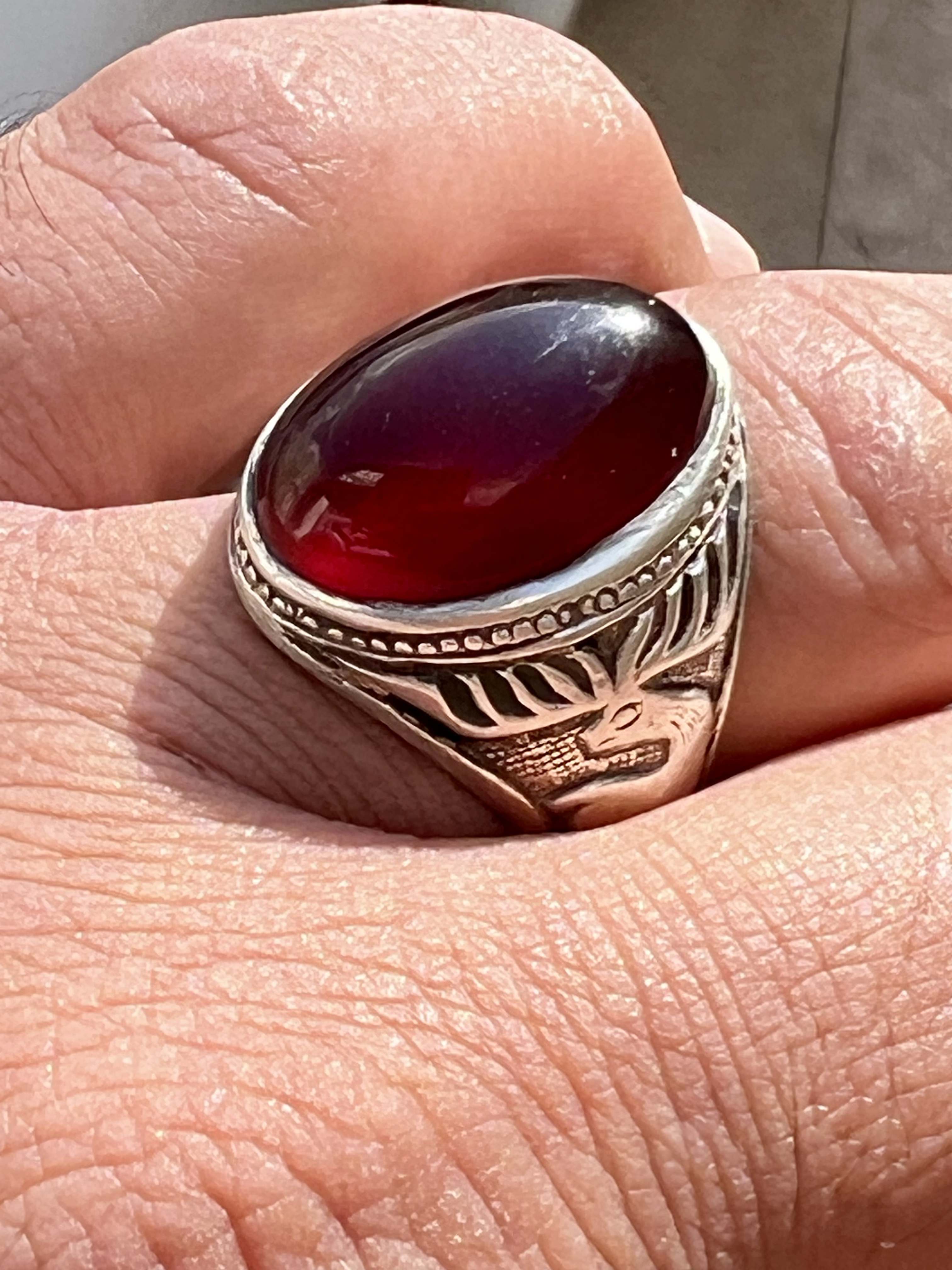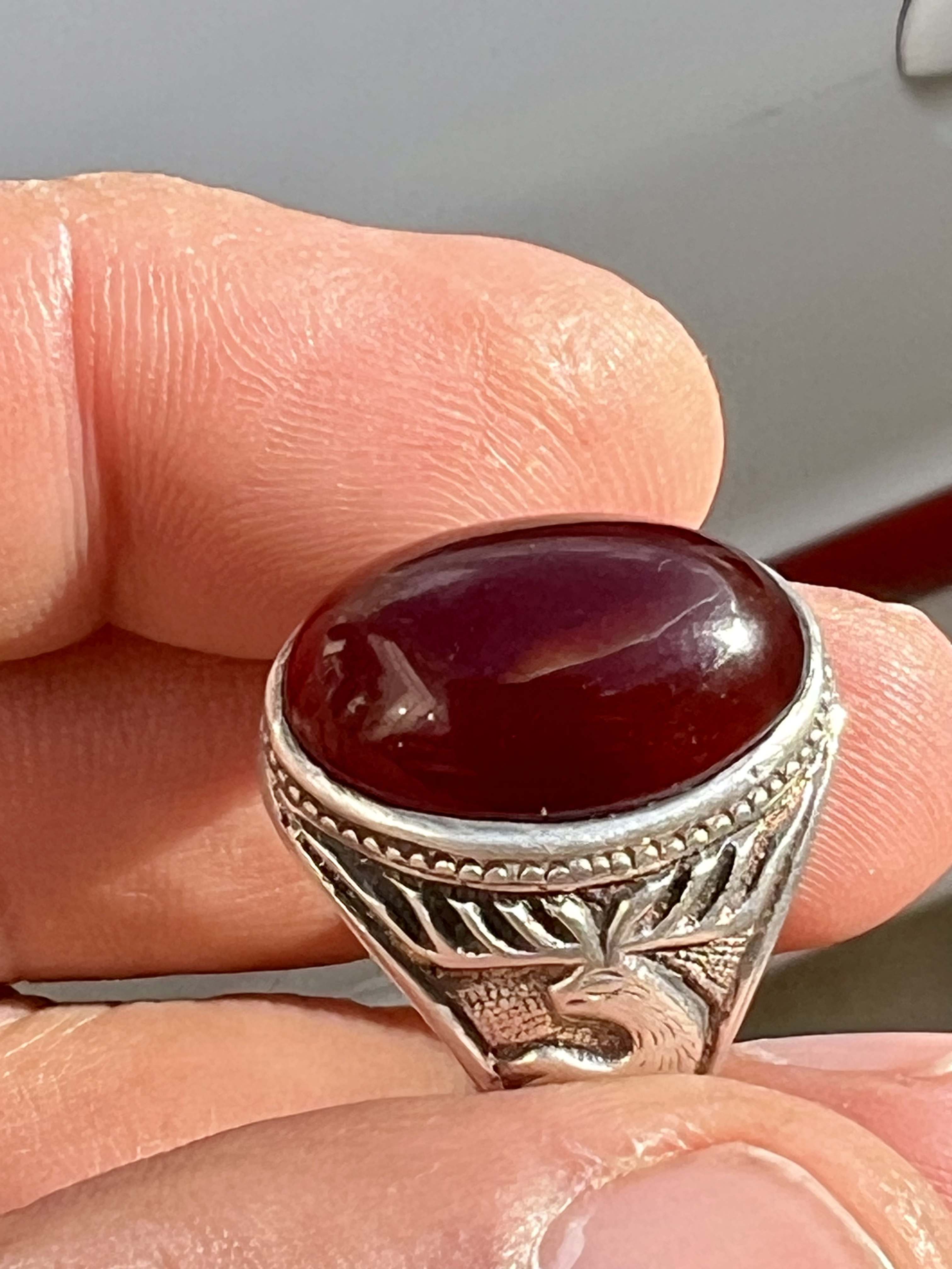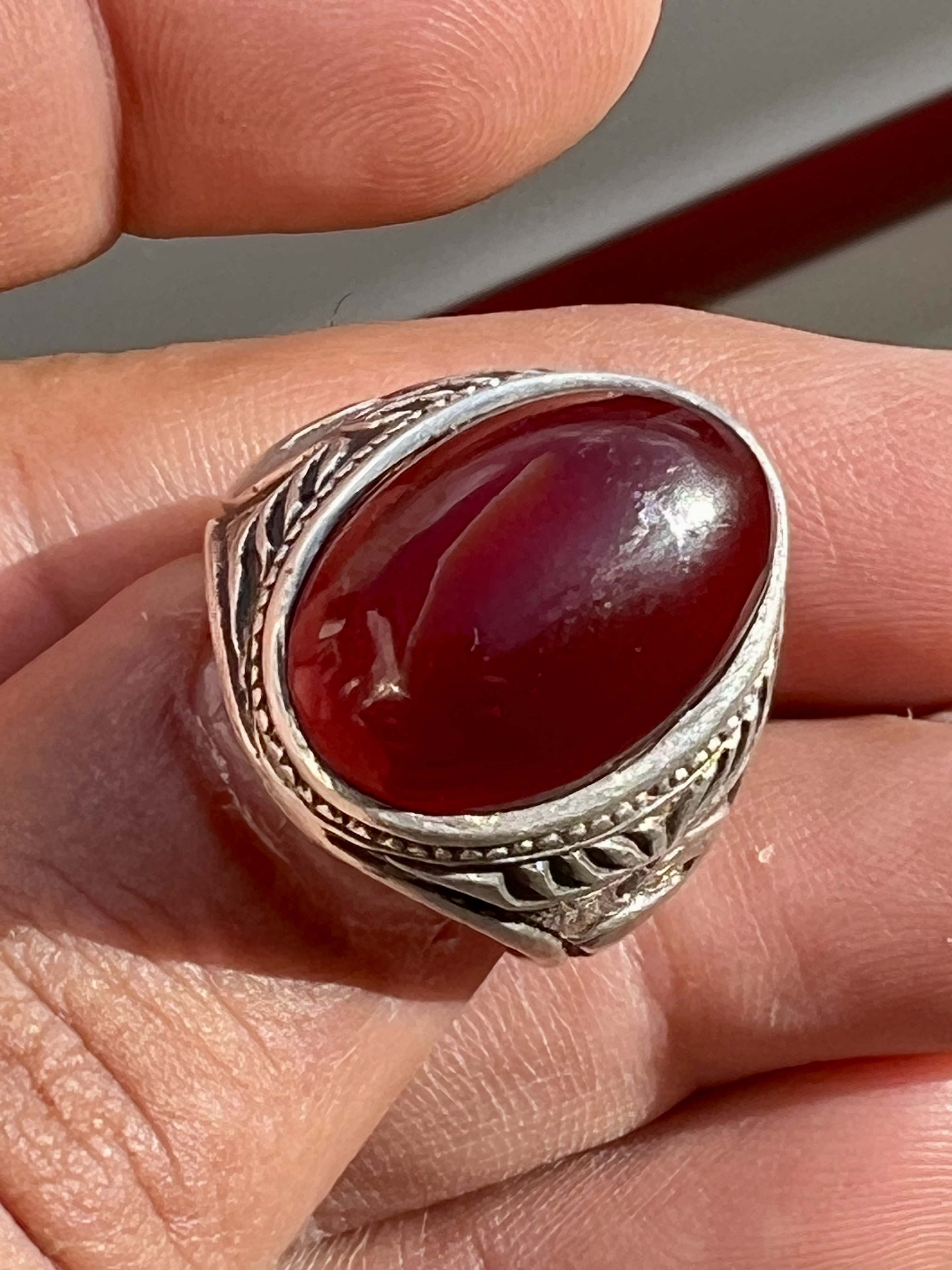 انگشتر نقره ۹۲۵ با عقیق سرخ کلوخه کهنه