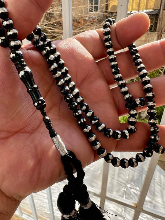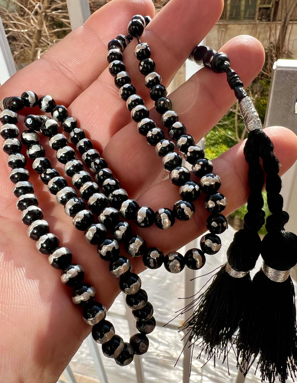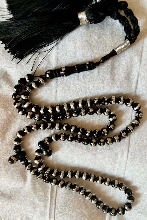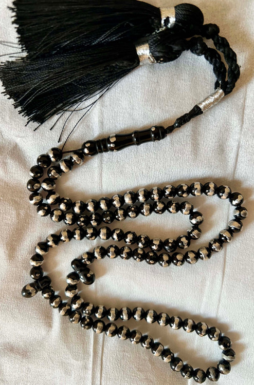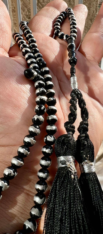 تسبیح یسر مصری کهنه قاجاری اصل قدمت دار و نقره کوب کد ،475