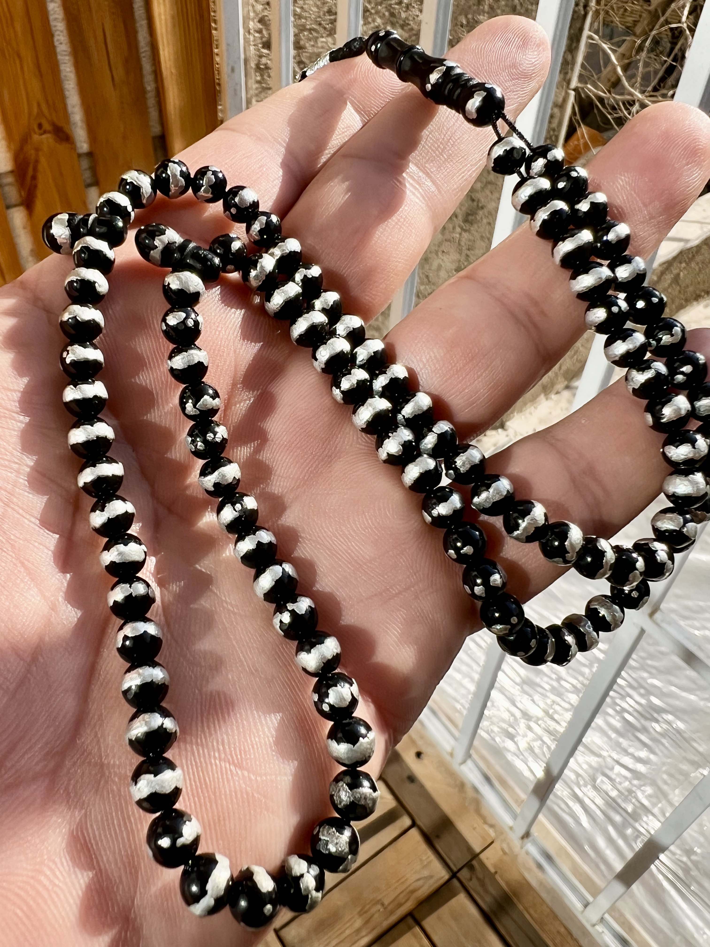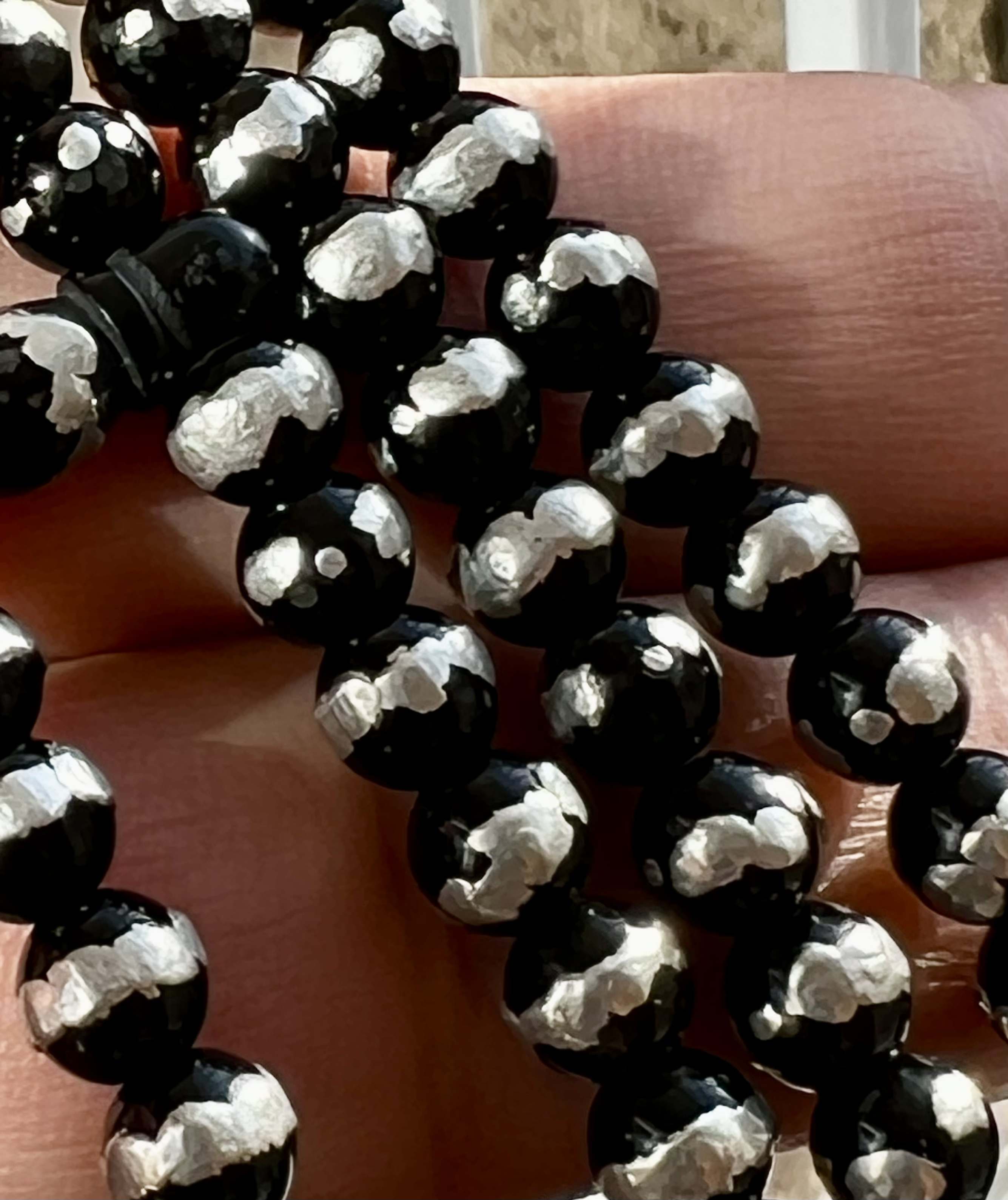 تسبیح یسر مصری کهنه قاجاری اصل قدمت دار و نقره کوب کد ،475