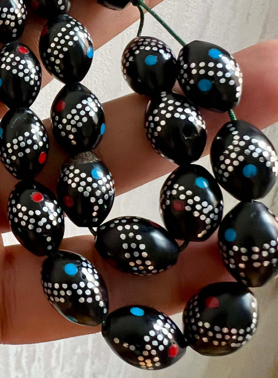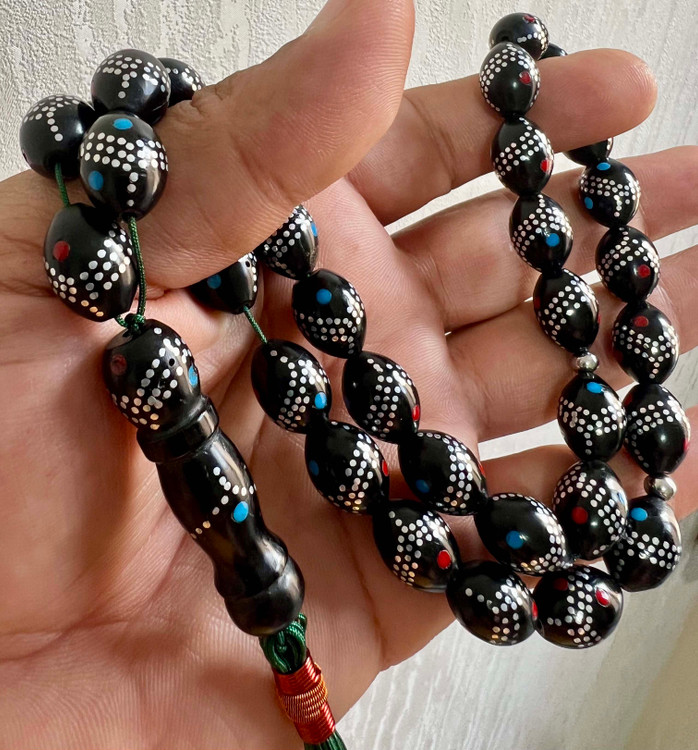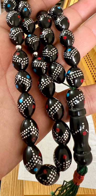 تسبیح یسر کهنه ، نقره کوبی شده و مرصع کاری شده ، بکر و سالم