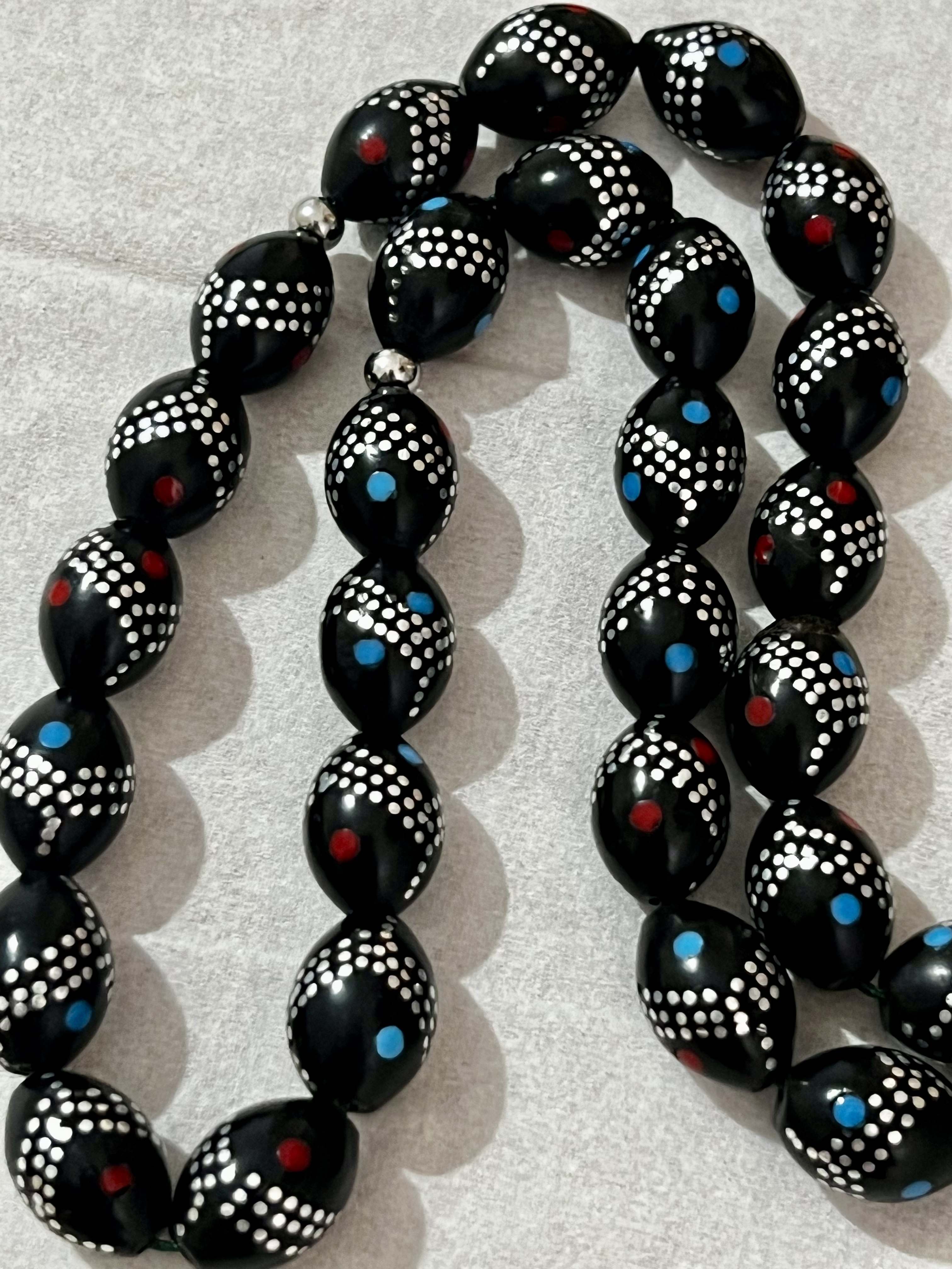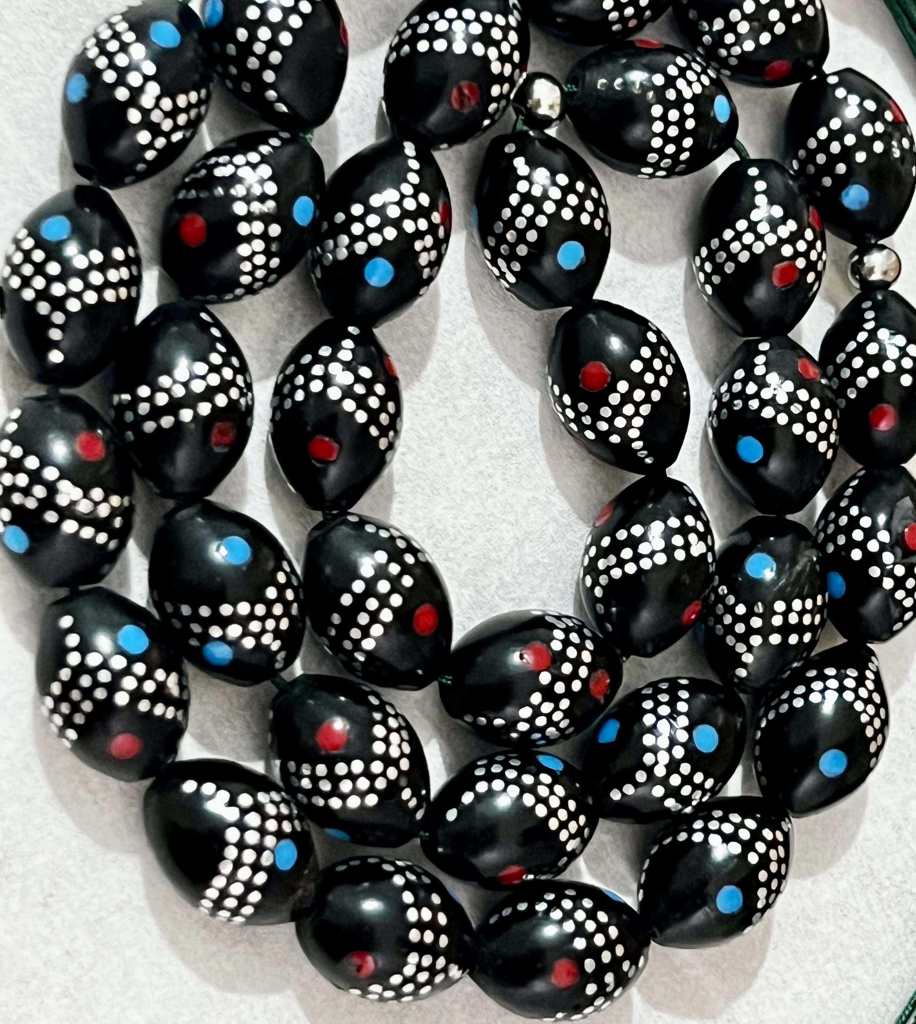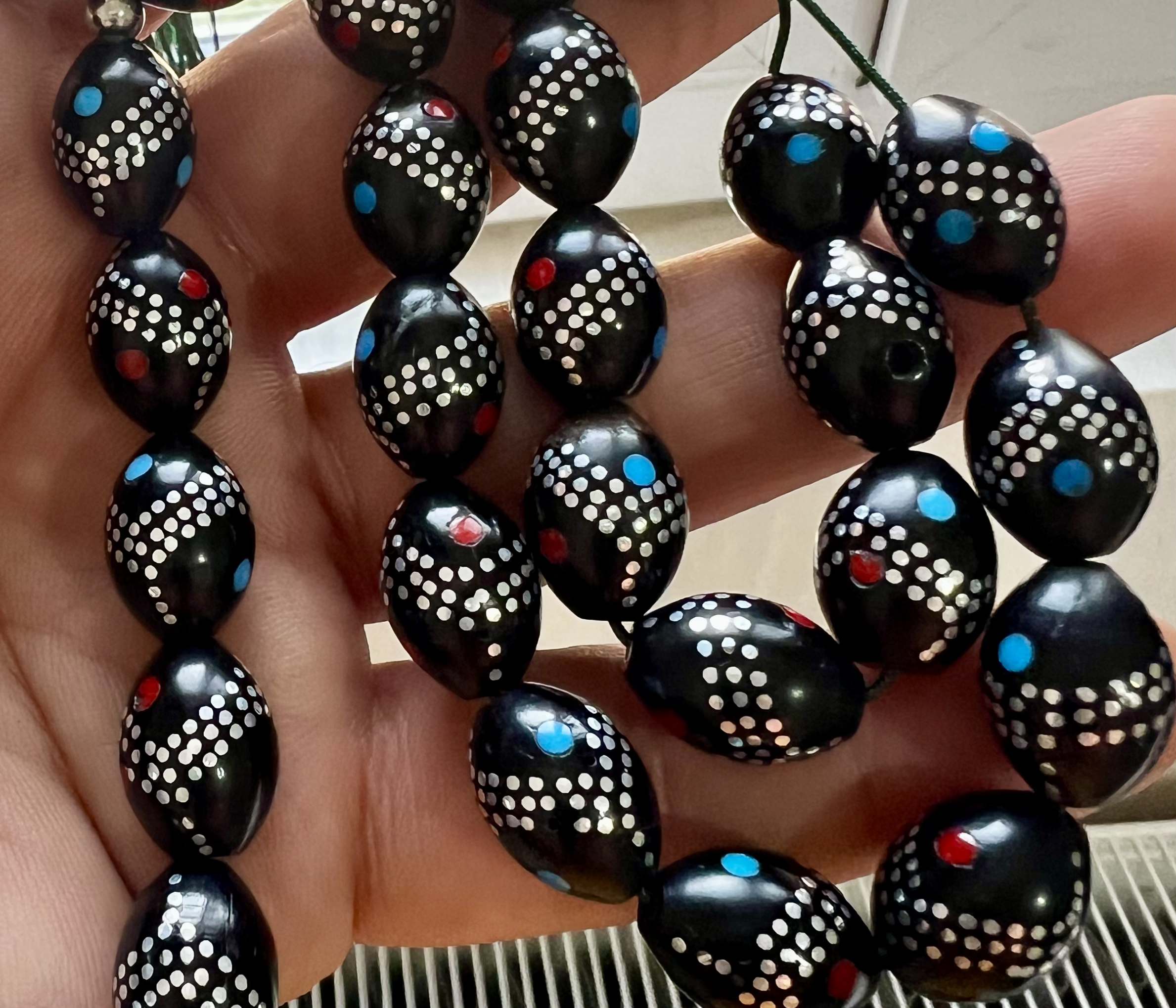 تسبیح یسر کهنه ، نقره کوبی شده و مرصع کاری شده ، بکر و سالم