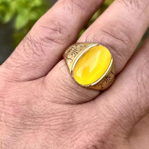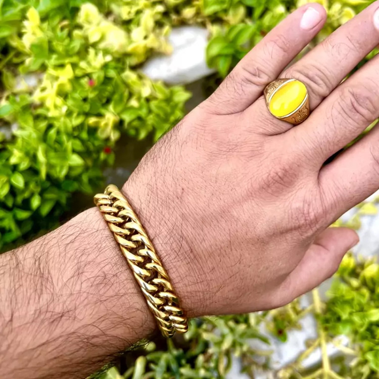 ست دستبند و انگشتر مردانه استیل با نگین عین الحر زرد