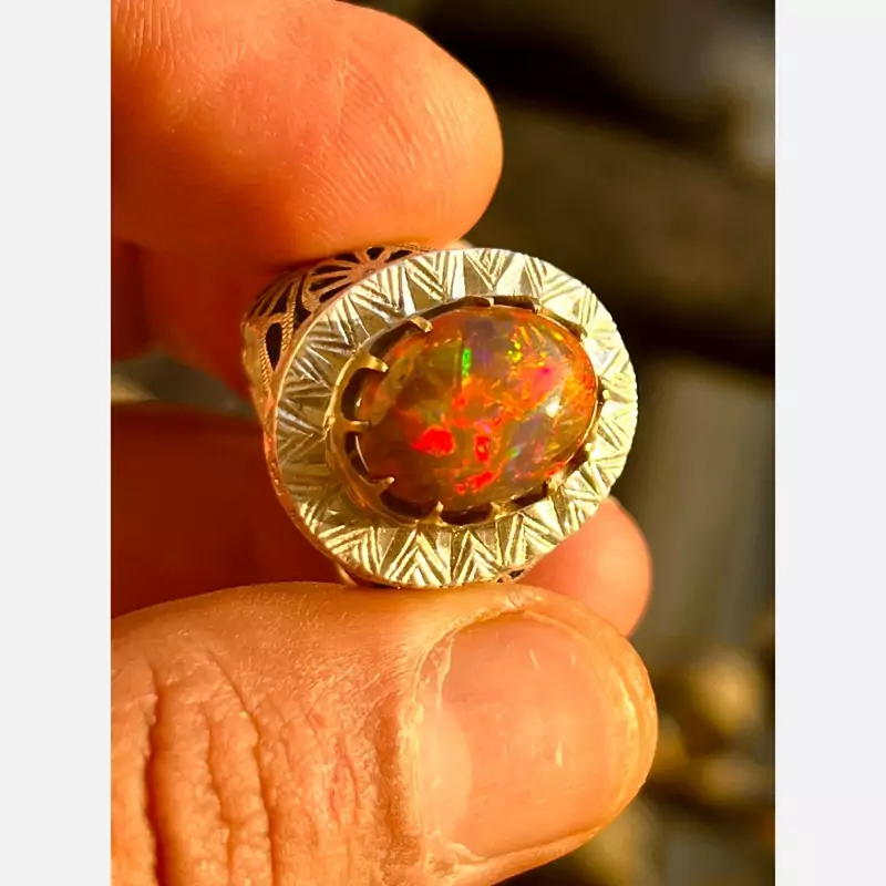 انگشتر بلک اوپال(اپال) اتیوپی شناسنامه دار کد 52