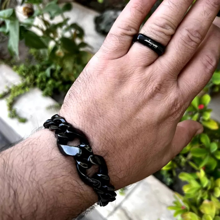 ست دستبند و انگشتر مشکی مردانه استیل برند