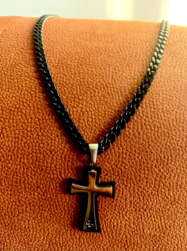 زنجیر و پلاک صلیب استیل مشکی طرح کارتیر(غیر اصل) ،رنگ ثابت کد ۱۱۶