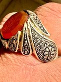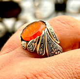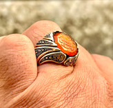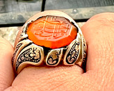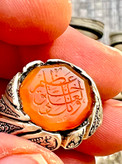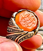 انگشتر عقیق یمنی کهنه رکاب دستی و قلمزنی شده با خط ممتاز مهندس محسن طوسی کد ۱۲۹