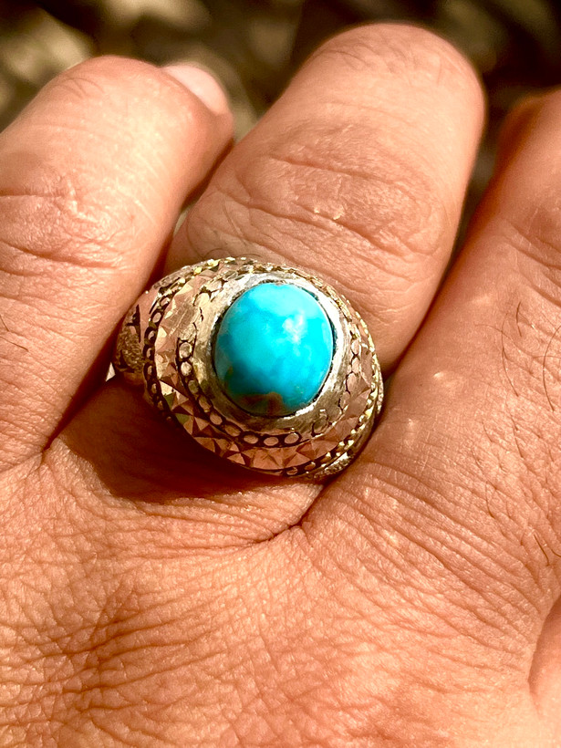 انگشتر فیروزه معدنی و احیا نشده نیشابوری رکاب دستی اثر استاد سروش کد ۱۳۹