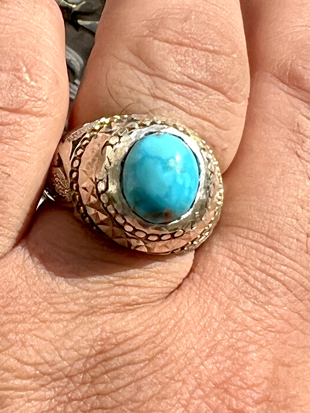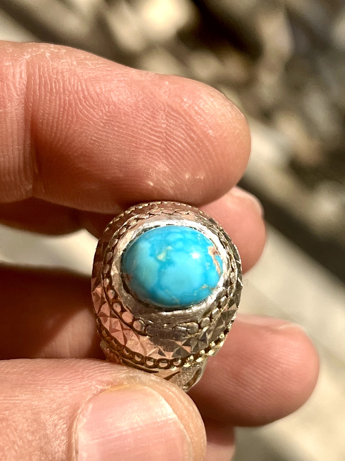 انگشتر فیروزه معدنی و احیا نشده نیشابوری رکاب دستی اثر استاد سروش کد ۱۳۹