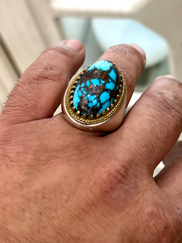 انگشتر فیروزه نیشابور معدنی طبیعی و قواره دار