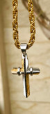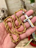 گردنبند (زنجیر )و پلاک طرح صلیب دورنگ ،توپر و سنگین ،استیل رنگ ثابت با کیفیت ساخت عالی