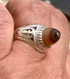انگشتر عقیق سه پوست کهنه یمنی اصل و معدنی سراسر طوق کد ۱۵۳