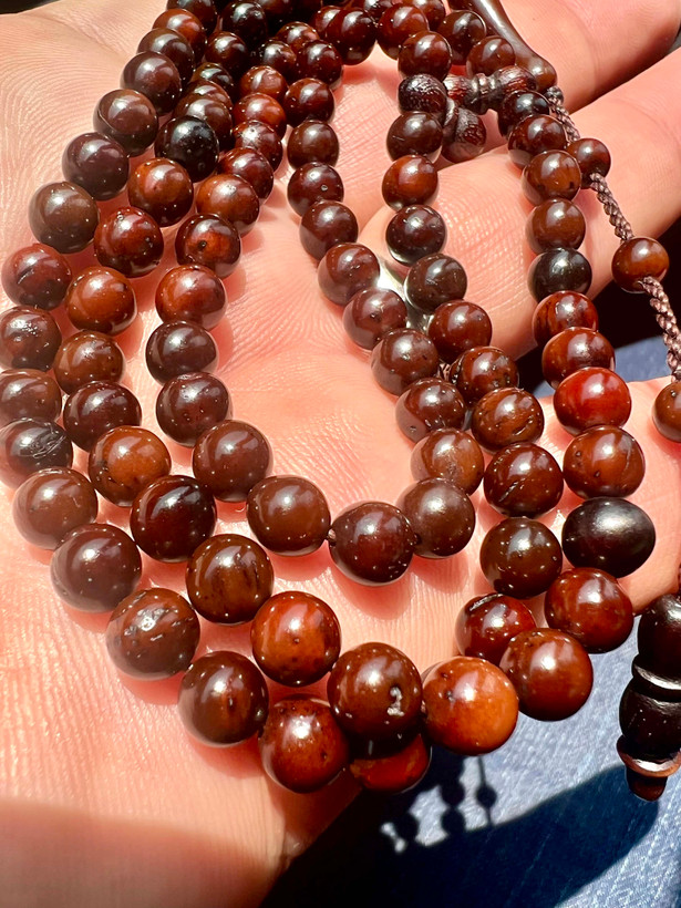 تسبیح کشکول کهنه و اصیل ۱۰۱ عددی رنگ قهوه ای سوخته کد ۱۸۶