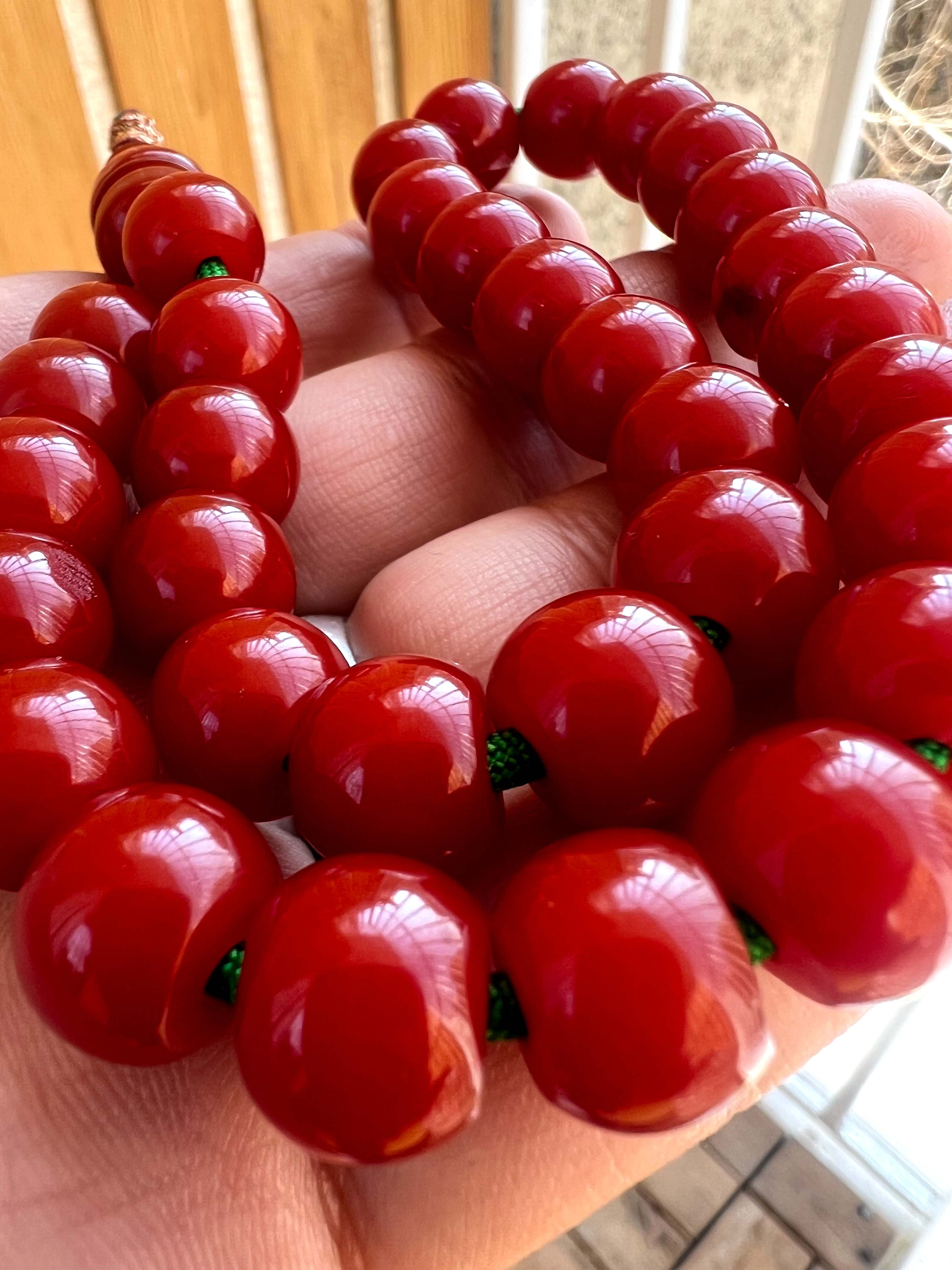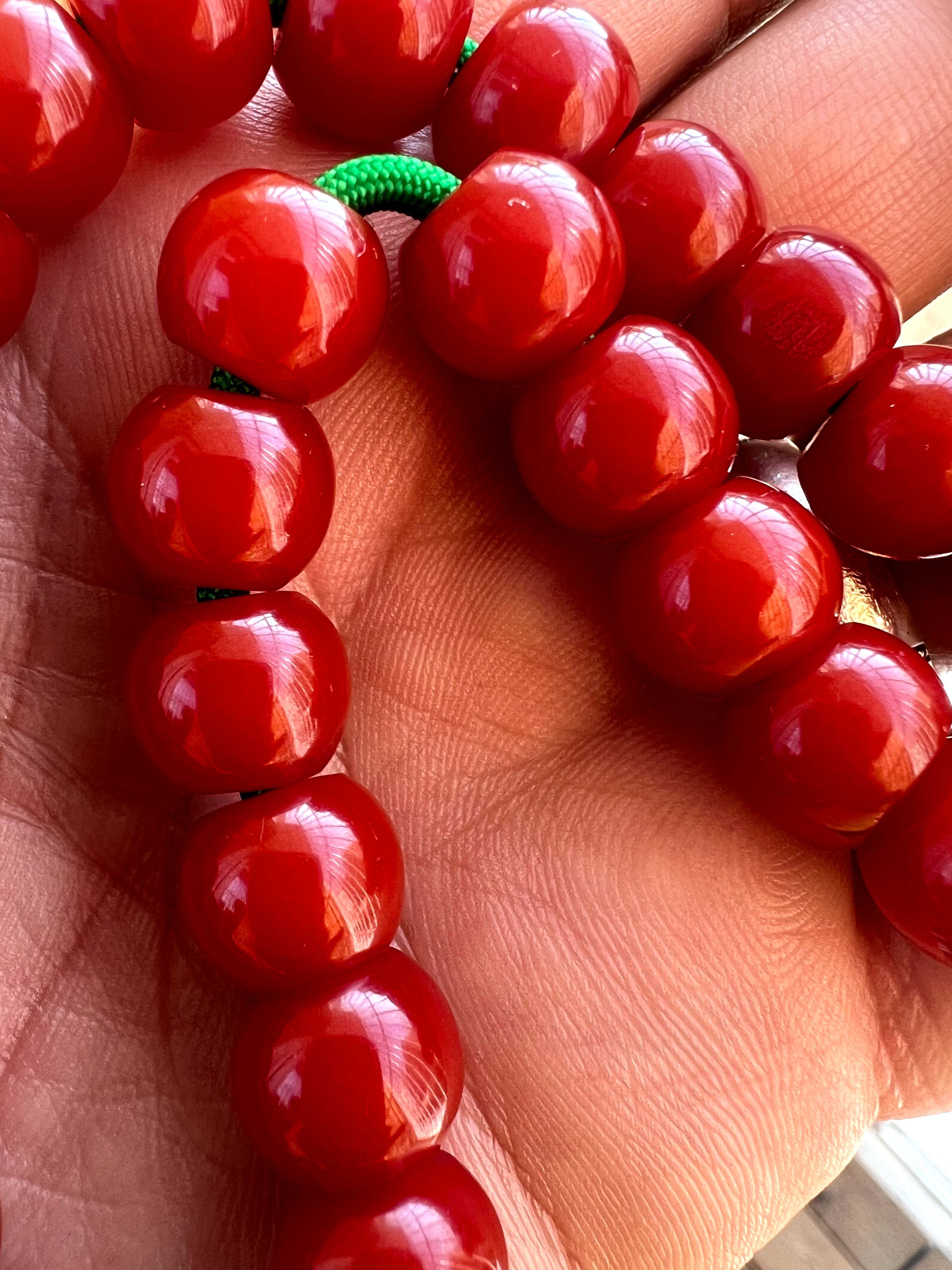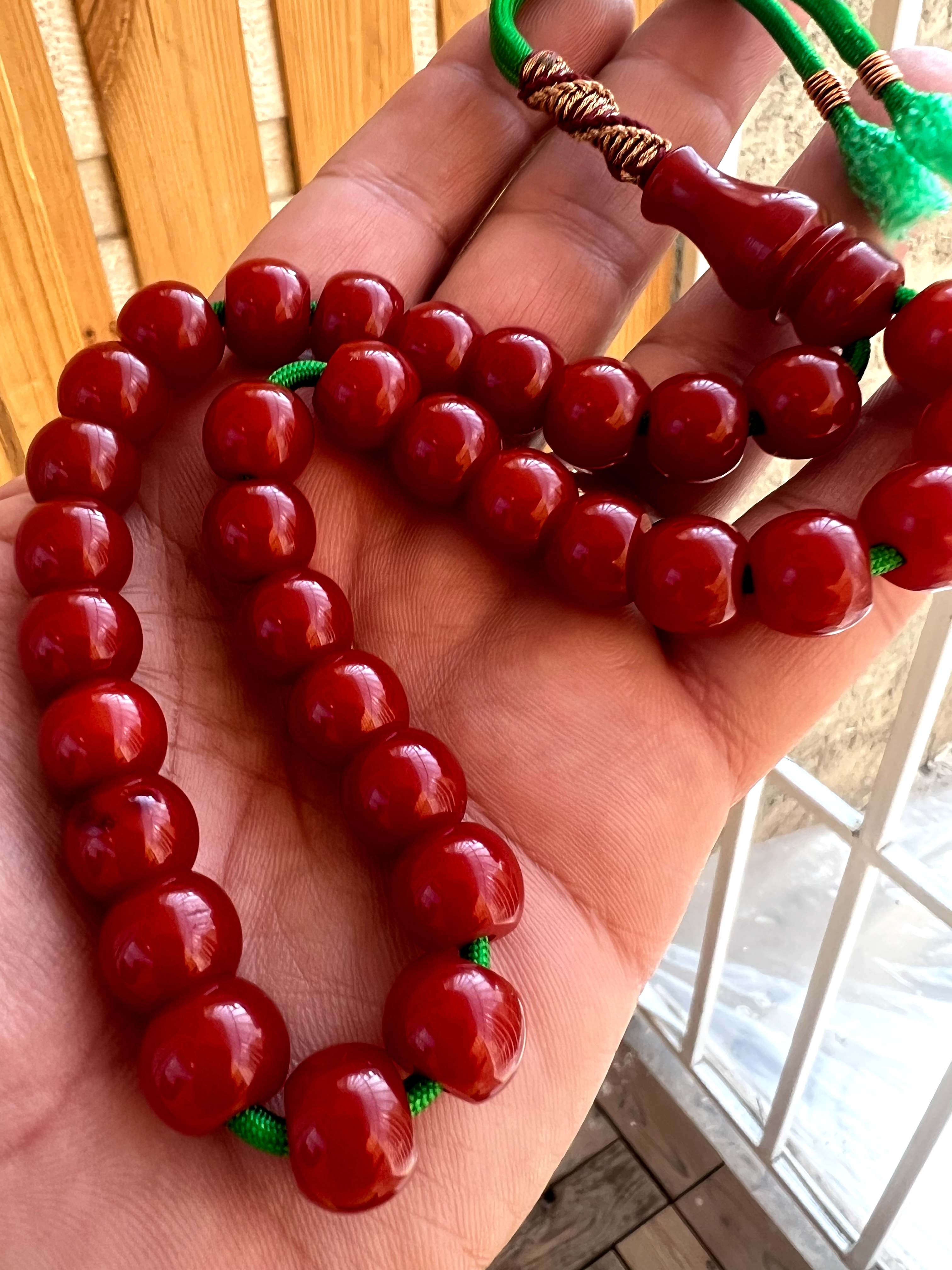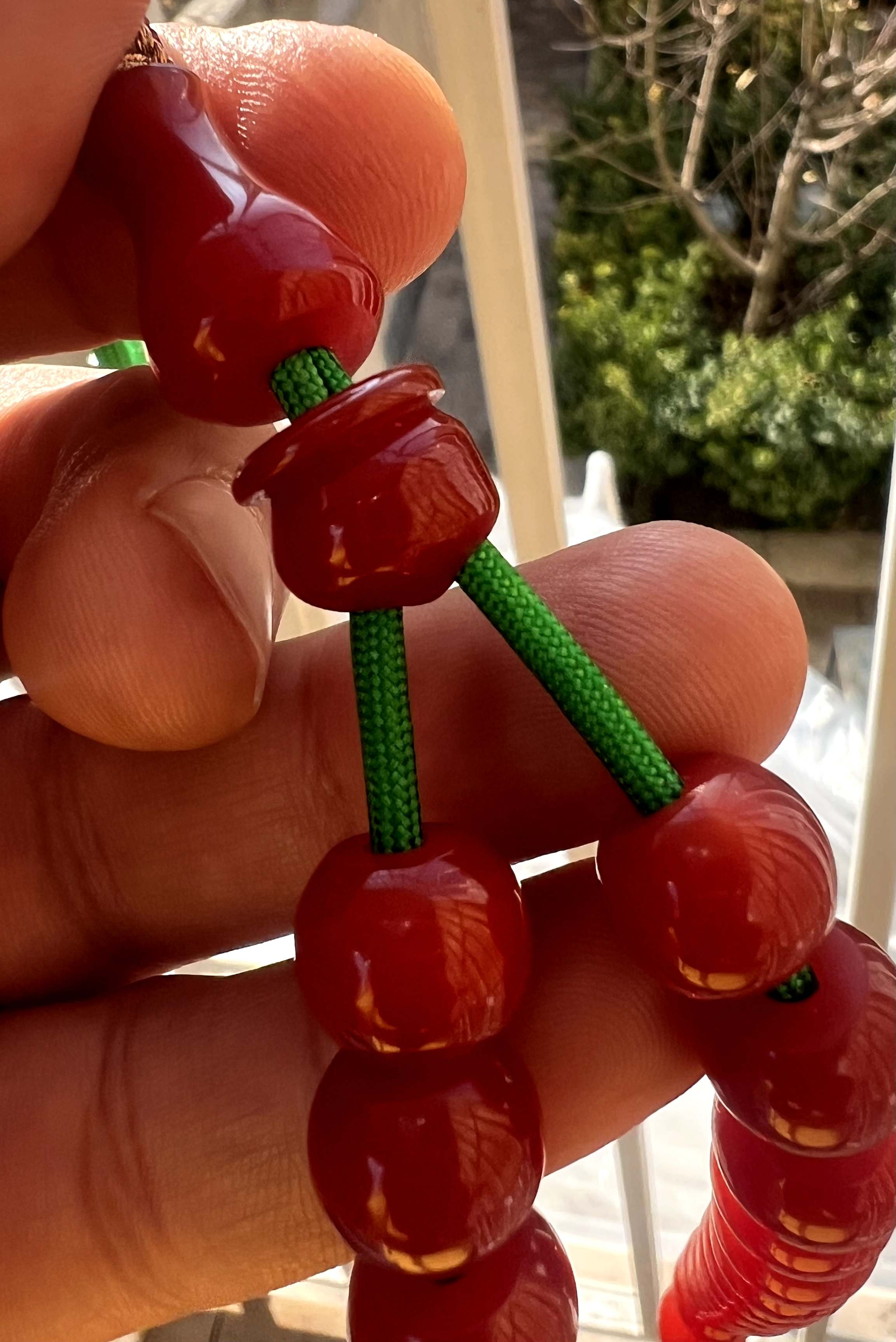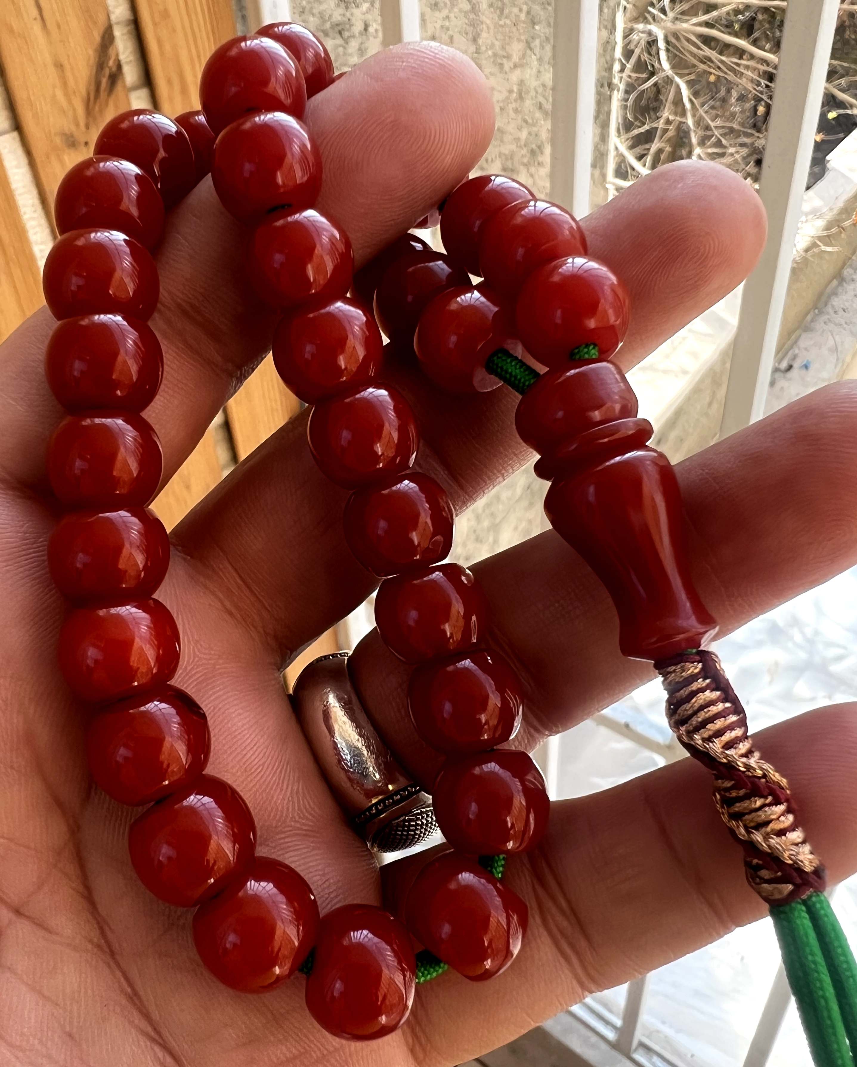 تسبیح کهربای تراش ۲۰ ساله از شمش کهنه قدمت دار و کلکسیونی، تراش عثمانی ، کد ۱۹۱