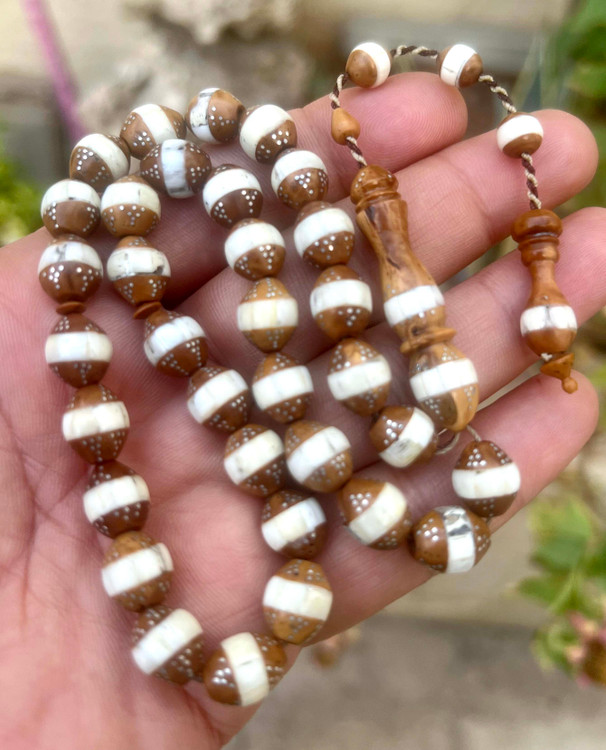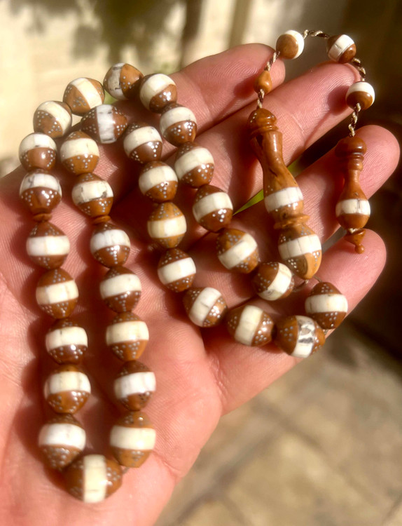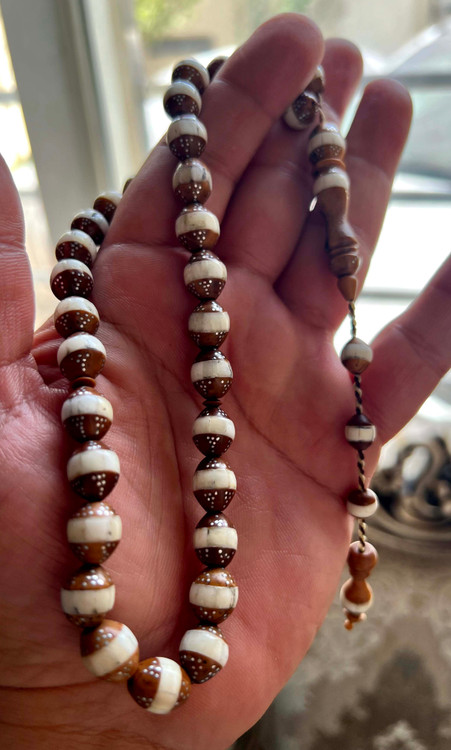 تسبیح کشکول نقره کوب و عاج کوبی شده
