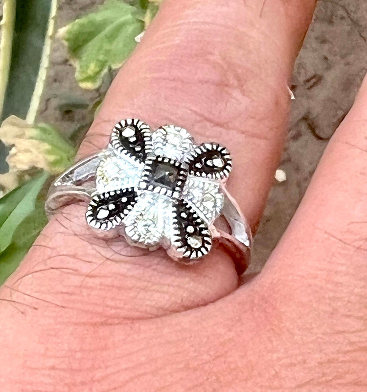 انگشتر نقره ۹۲۵ تایلندی زنانه با نگین مارکازیت و برلیان