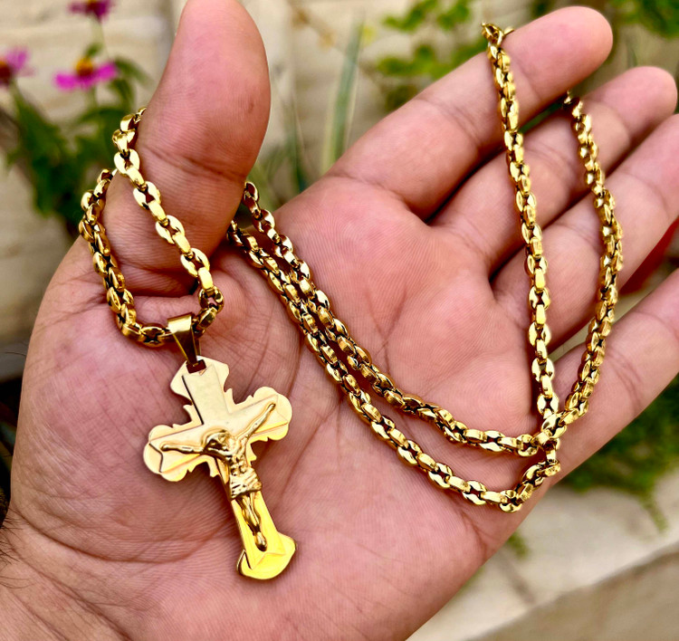 زنجیر (گردنبند)و پلاک حضرت مسیح(ع) استیل آبکاری رنگ ثابت