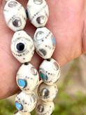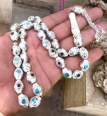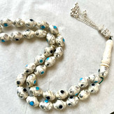 تسبیح استخوان شتر نقره کوب و مرصع کاری ظریف کهنه و اصیل