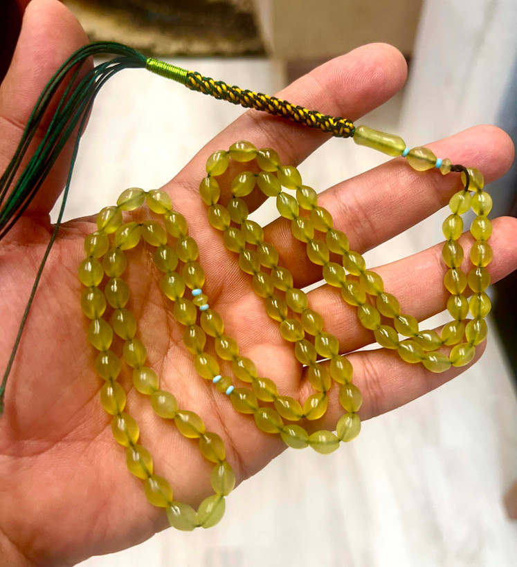 تسبیح شاه مقصود کهنه افغان زیتونی رنگ ،جلال آبادی اصل کد ۲۰۸
