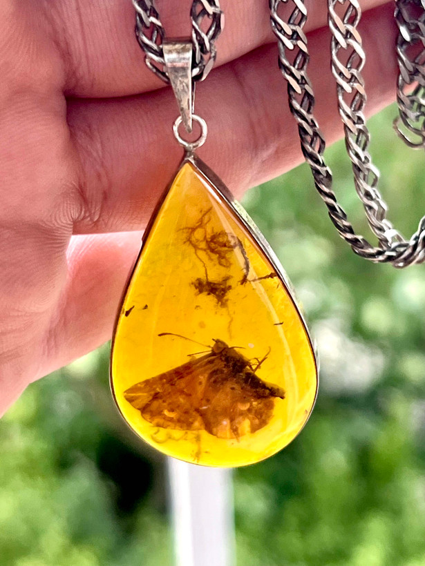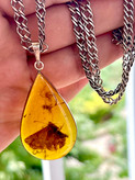 زنجیر و مدبر نقره ۹۲۵ با پلاک کهربا حشره دار کد ۲۱۴