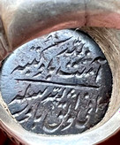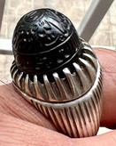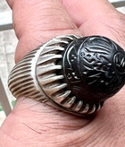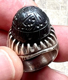 انگشتر حدید قدمت دار با دعای هفت جلاله حک شده پشت و روی سنگ به خط کهنه قاجاری کد ۲۱۵