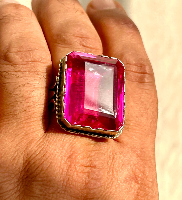 انگشتر یاقوت شمش درشت کم نظیر ، قواره دار ، رکاب قدیمی دستی کد ۲۱۸