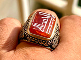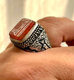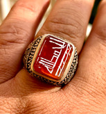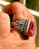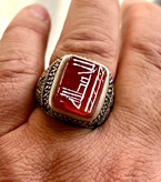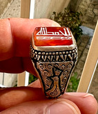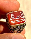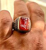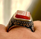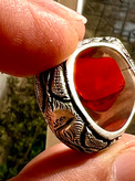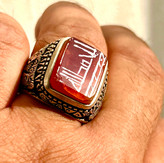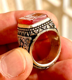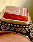 انگشتر عقیق کهنه یمنی اصل طوقدار با خط پیازی قدیمی ۵۰ ساله رکاب قلمزنی اثر استاد آزاده کد ۲۱۹