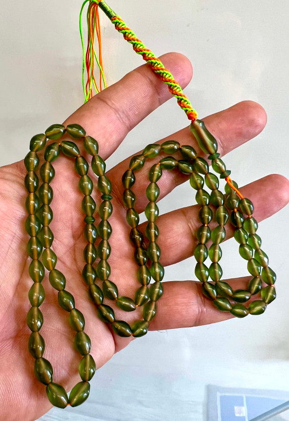 تسبیح شاه مقصود افغان سبز نخ نما و پاک ،کهنه با تراش گندمی حرفه ای کد ۲۲۱