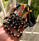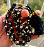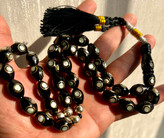 تسبیح چوبی آبنوس کهنه و اصل تراش کشورهای عربی ، صدف کوب و برنج کوب کد ۲۲۳