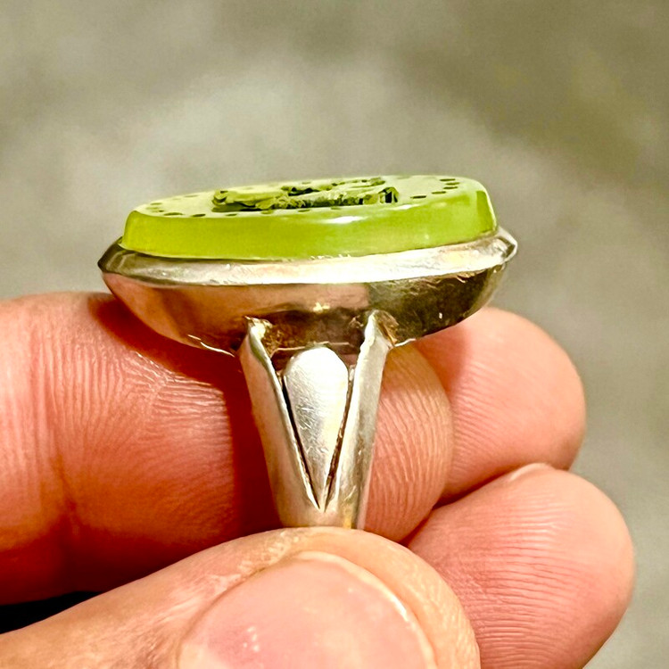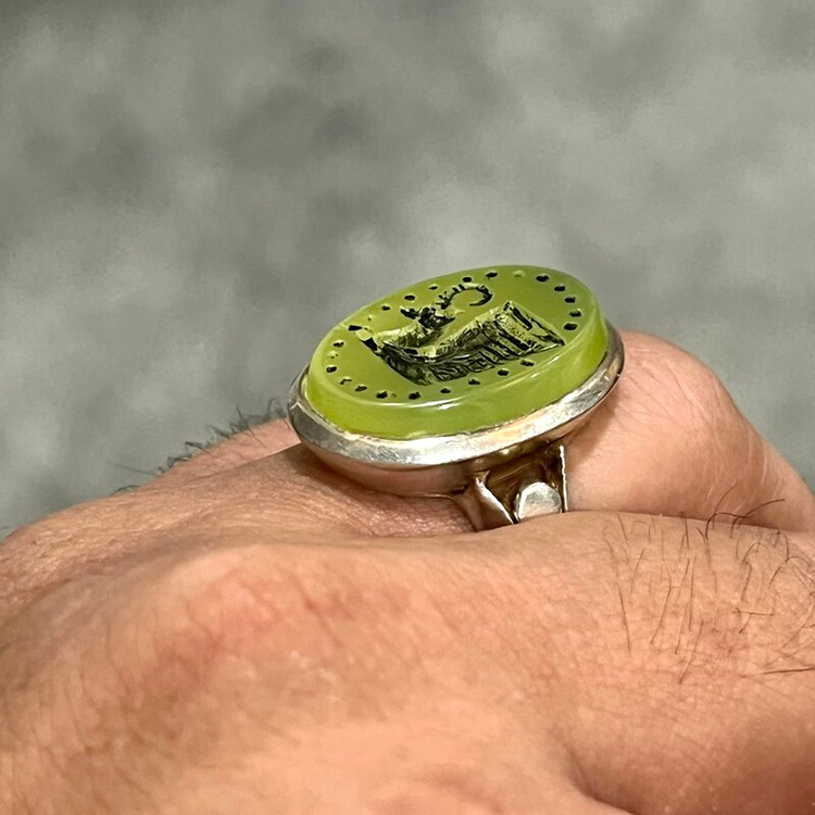 عقیق سبز کاهویی با نشان ریتون انگشتر نقره ۹۲۵