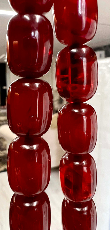 تسبیح کهربای فاتوران سرخ کهنه رگه دار ،خشک و کلکسیونی کد ۲۳۰