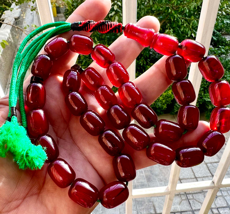 تسبیح کهربای فاتوران سرخ کهنه