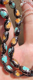 تسبیح یسر حجاز یا مکاوی اصل با بوی شدید یسر بسیار کهنه ،نقره کوب فیروزه و کهربا کوب