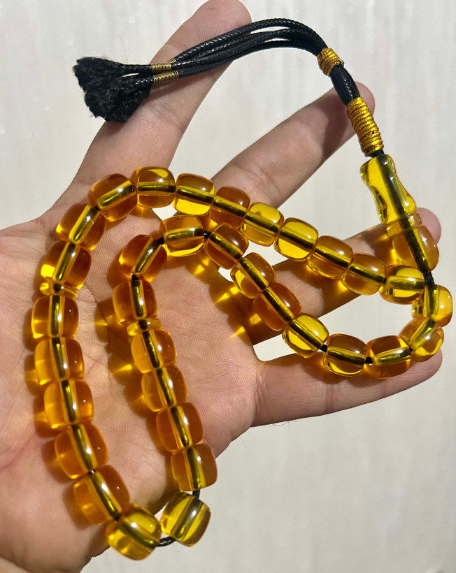 تسبیح سندلوس کهنه آلمان اصل ،آب حیات زرد نباتی، پلمپ و فابریک کد ۲۳۶