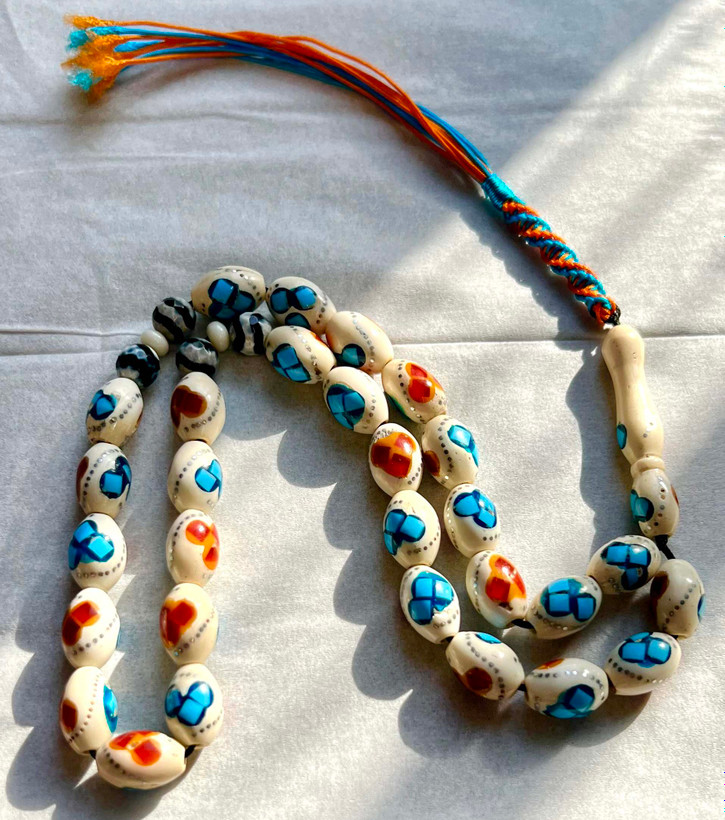 تسبیح استخوان شتر اصل نقره کهربا و فیروزه کوب کد ۲۴۱