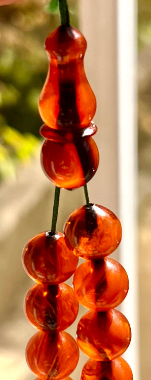 تسبیح کهربای تمام رگه دار، شمش ده ساله سری اول رنگ آورده و بودار کد ۲۴۵