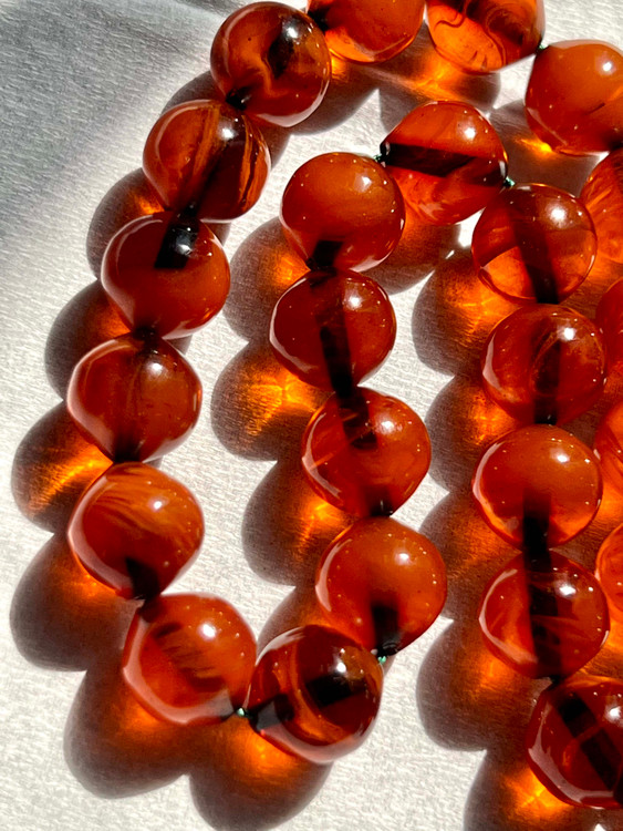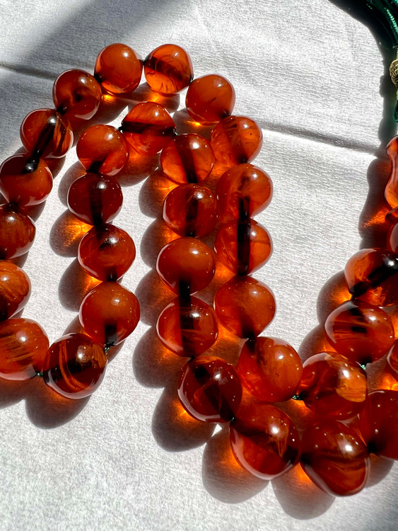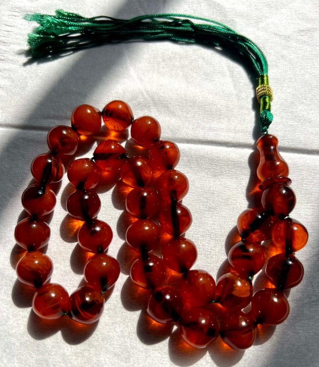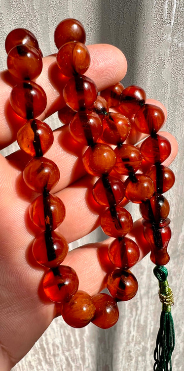 تسبیح کهربای کهنه تمام رگه دار