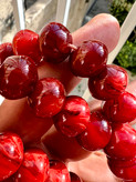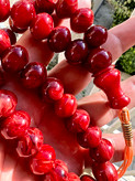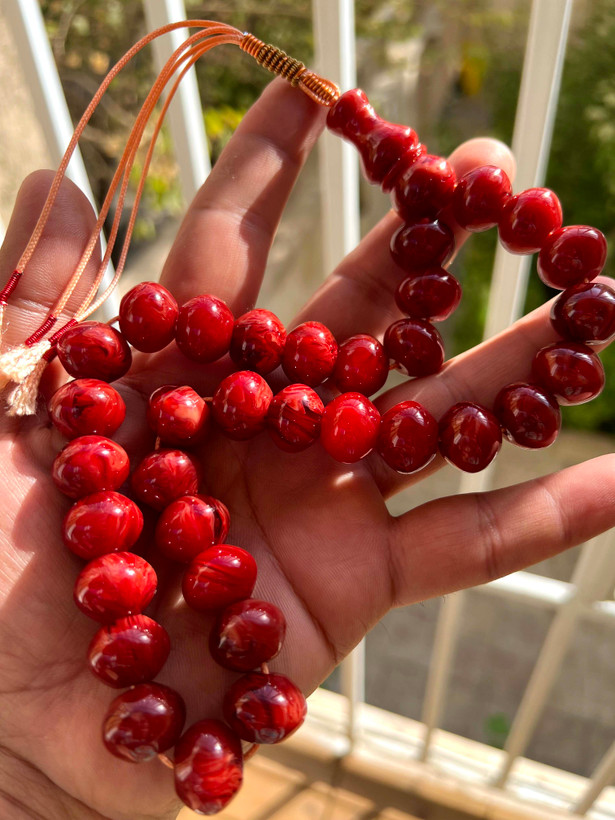 تسبیح کهربای پرچمی سرخ کهنه ۱۵ ساله ،تراش استامبولی کد ۲۴۸